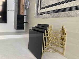 Hayal 4'lü Kare Zigon Sehpa Seti Gold Ayak, Siyah Mermer Mdf Hayal 4'lü Kare Zigon Sehpa Seti Gold Ayak, Siyah Mermer Mdf hayal تک سایز