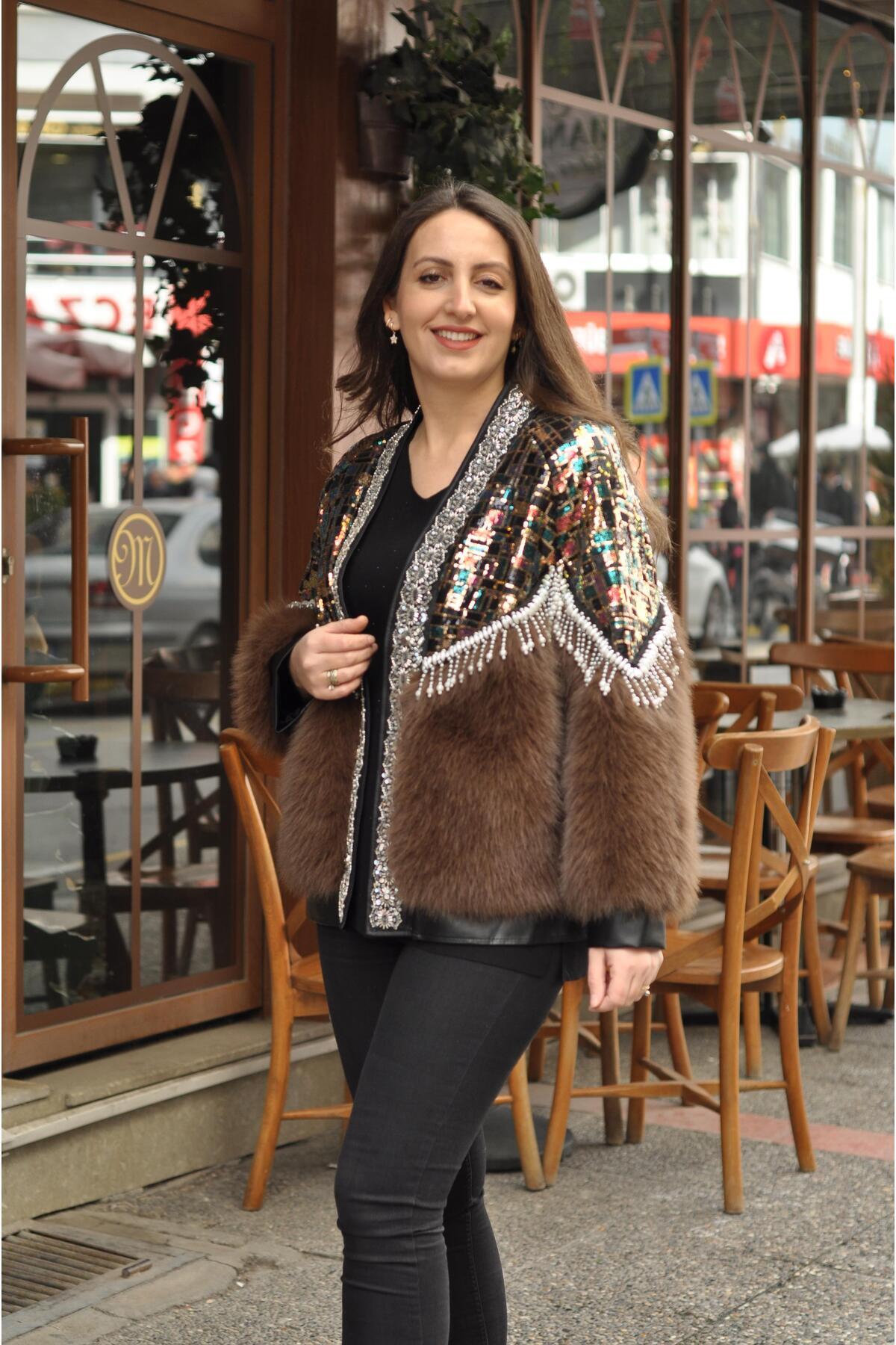 İthal İncili Kürklü Hırka Mont Kahve İthal İncili Kürklü Hırka Mont Kahve Kbn00015 Standart