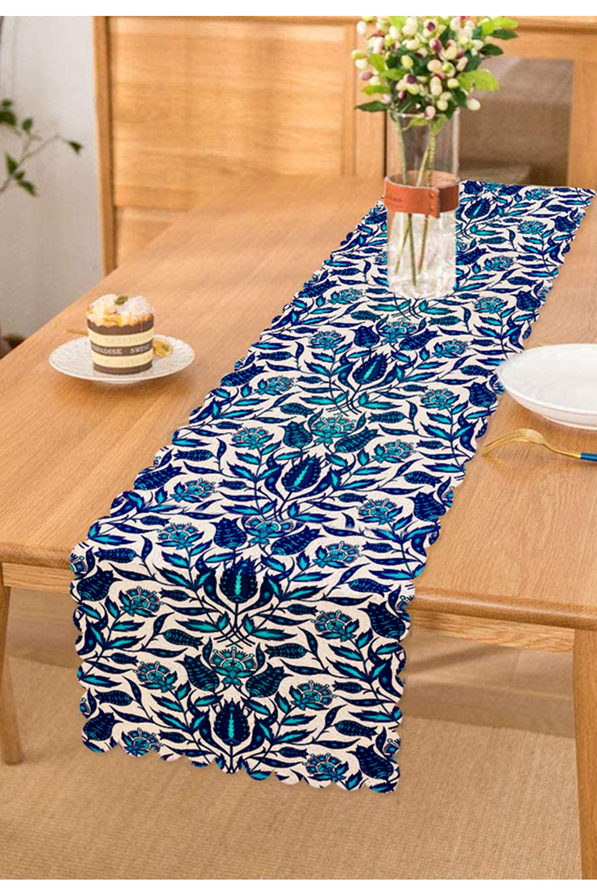 Mavi Cam Göbeği Etnik Desenli Dekoratif Püsküllü Şönil Üçgen Runner Mavi Cam Göbeği Etnik Desenli Dekoratif Püsküllü Şönil Üçgen Runner UcgenRunner-2079 تک سایز