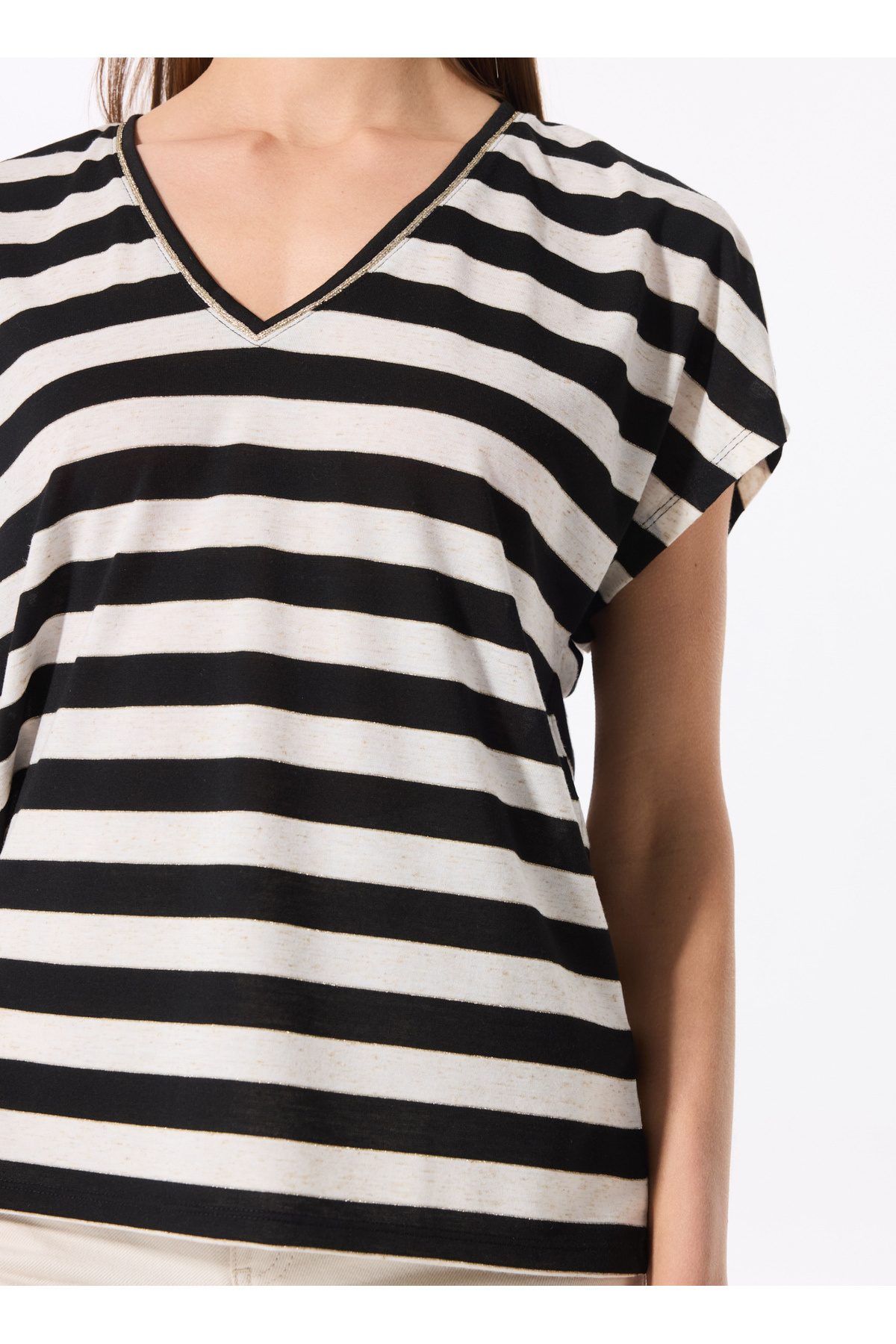Siyah - Ekru Kadın V Yaka Relaxed Çizgili T-Shirt FC5SL-TST0214 Siyah - Ekru Kadın V Yaka Relaxed Çizgili T-Shirt FC5SL-TST0214 5003224017 2XL