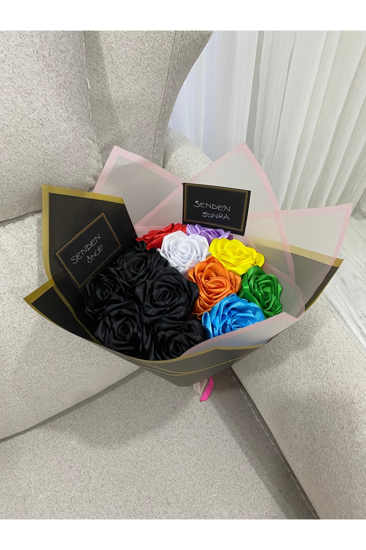 Senden önce senden sonra çiçek buketi-Kurdeleden çiçek- sevgiliye hediye gül buketi(NOT YAZILIR) Senden önce senden sonra çiçek buketi-Kurdeleden çiçek- sevgiliye hediye gül buketi(NOT YAZILIR) gül1 تک سایز