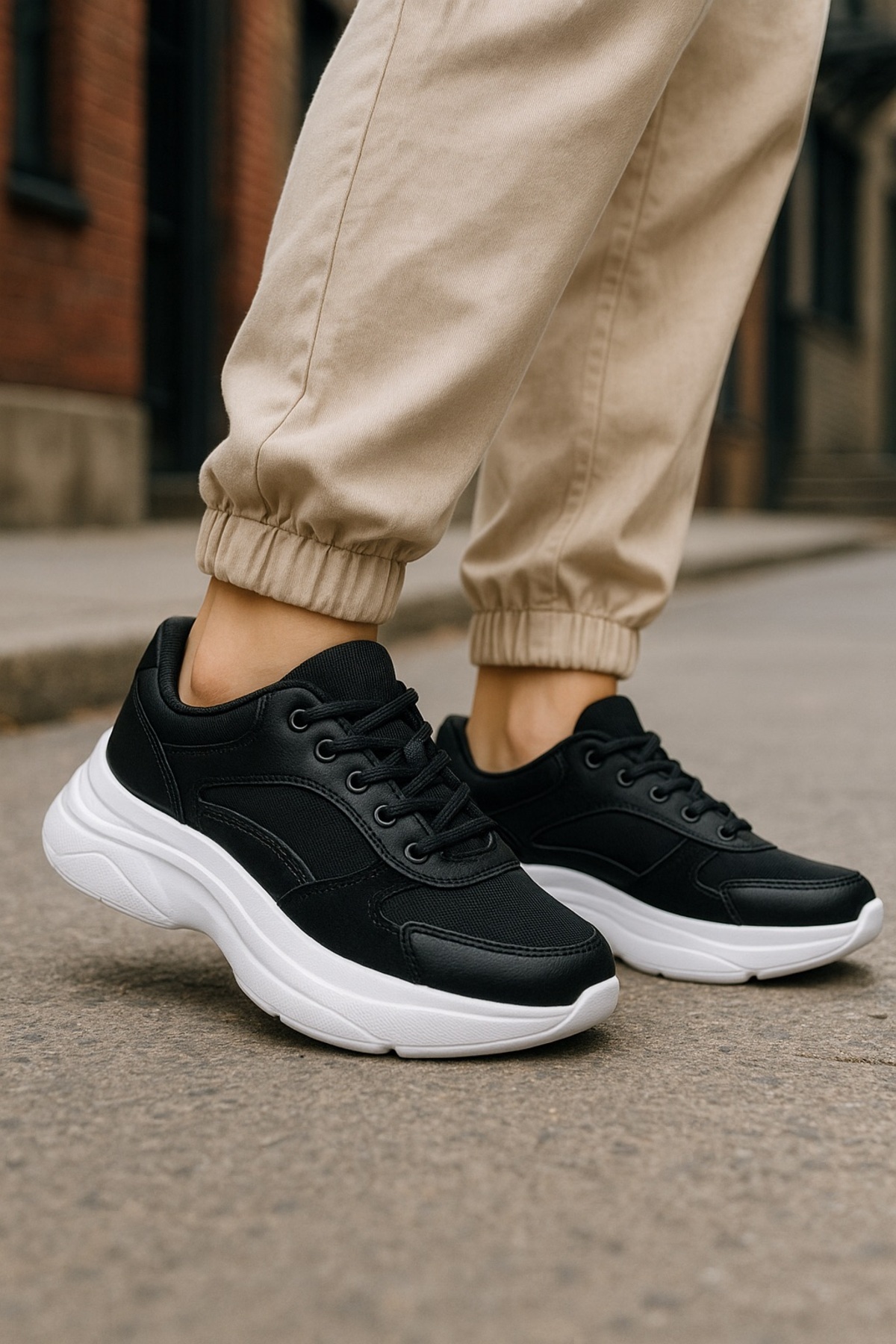 Kadın Siyah Renk Vegan Deri Kadın Sneakers & Spor Ayakkabı (TABAN 4 CM) Kadın Siyah Renk Vegan Deri Kadın Sneakers & Spor Ayakkabı (TABAN 4 CM) SMS25-2107 40