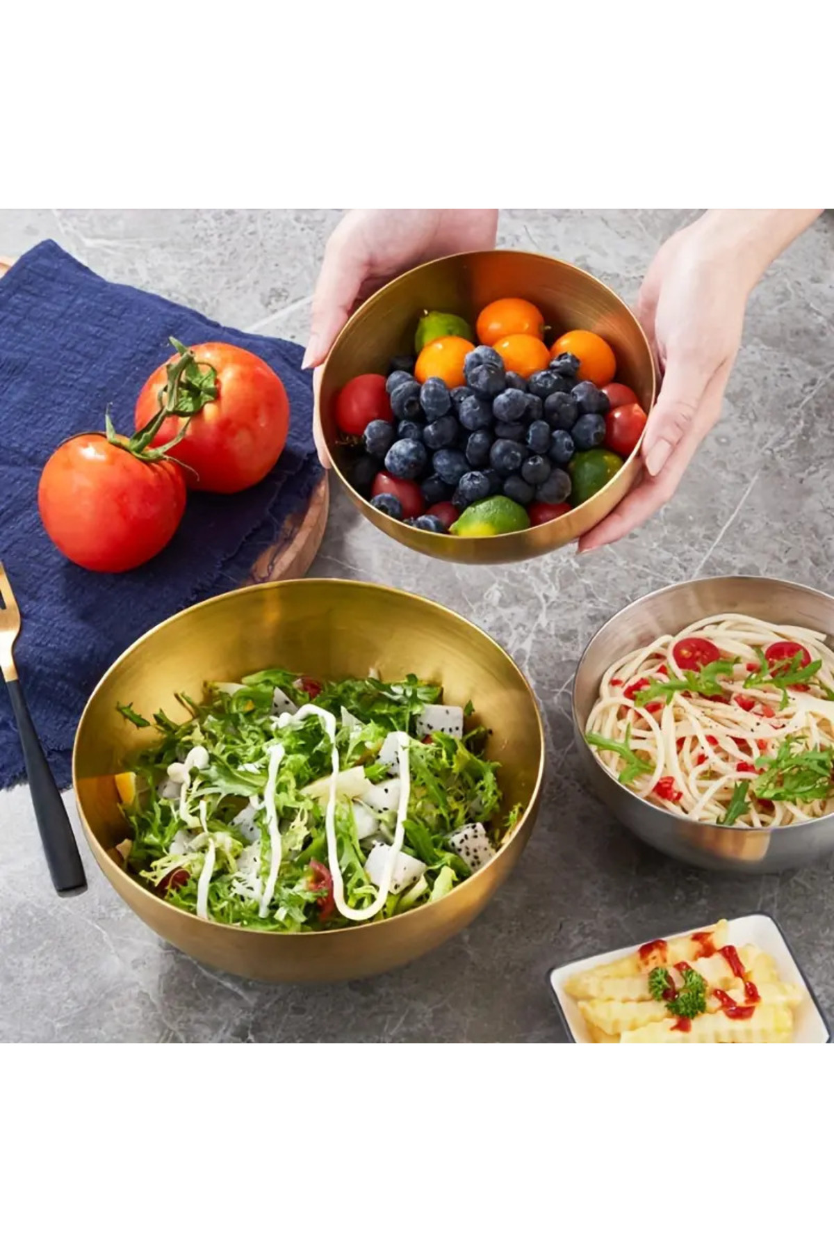 3'Lü Gold Paslanmaz Çelik Karıştırma Ve Salata Kasesi Çırpma (17CM-19CM-22CM) 3'Lü Gold Paslanmaz Çelik Karıştırma Ve Salata Kasesi Çırpma (17CM-19CM-22CM) 1234541 تک سایز