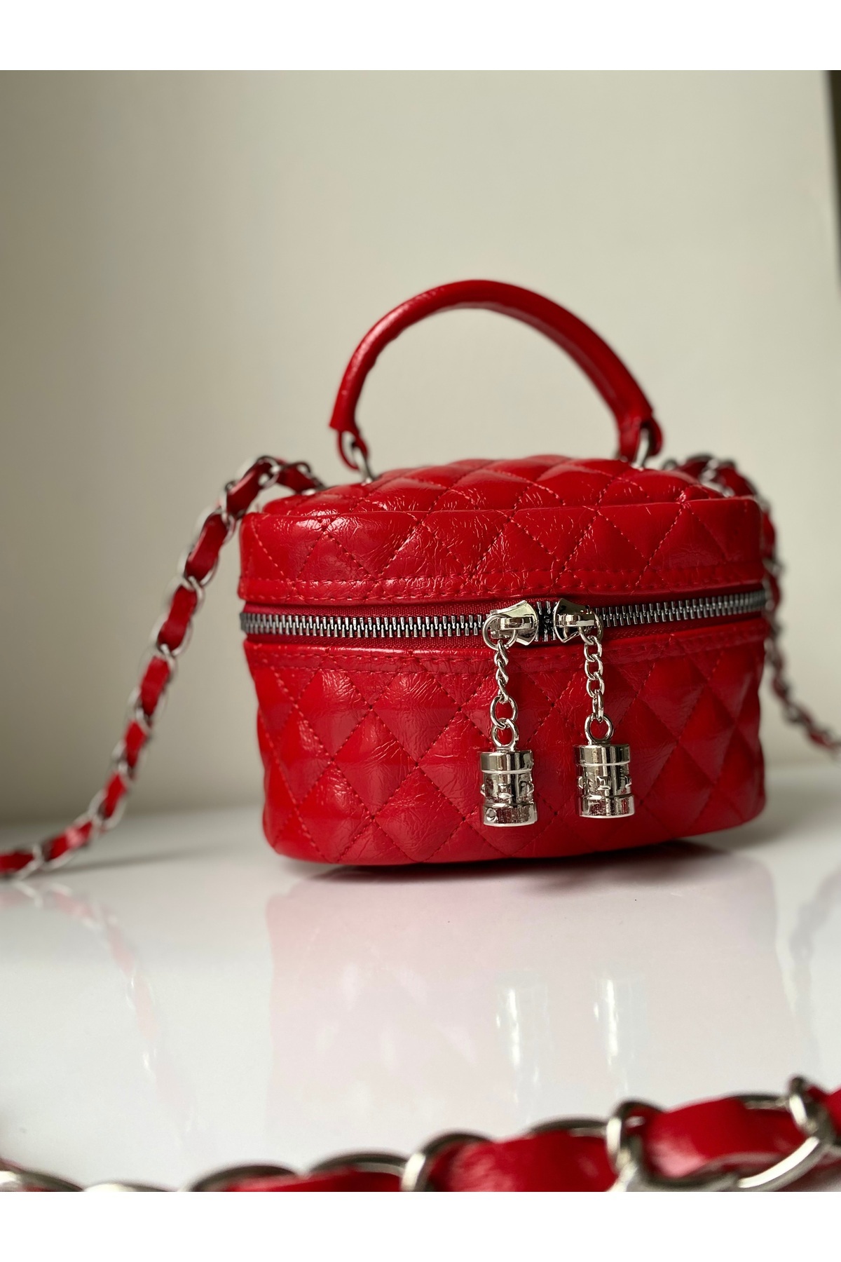 Parlak Mini Kutu Zincir Askılı Fermuar Kapamalı Kadın El Ve Omuz Çanta Luna Parlak Mini Kutu Zincir Askılı Fermuar Kapamalı Kadın El Ve Omuz Çanta Luna rb0024007 Standart