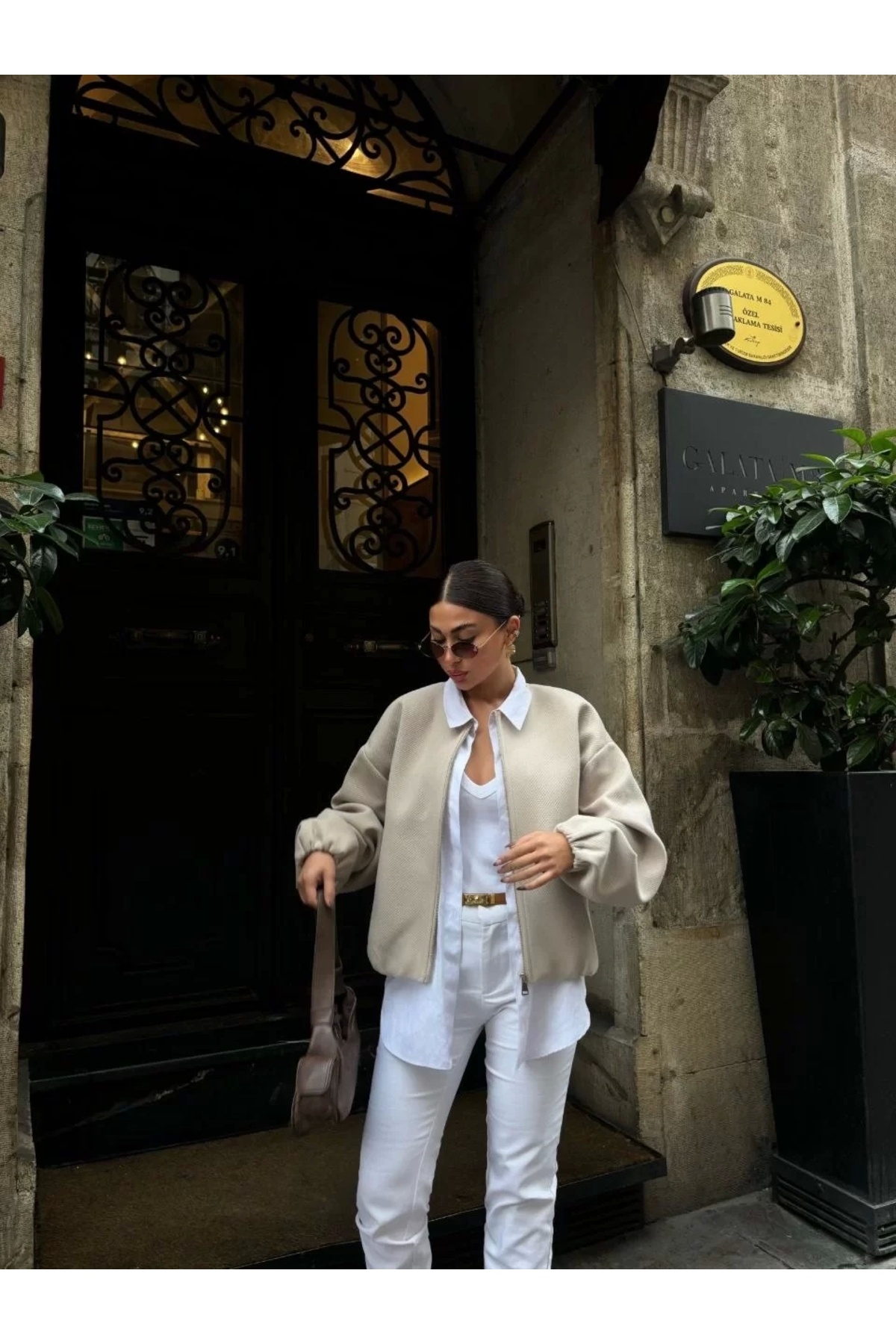 Kaşe Kaşmir Fermuarlı CEKET - Bej Kaşe Kaşmir Fermuarlı CEKET - Bej MHT-TYTR-7325 52/4K