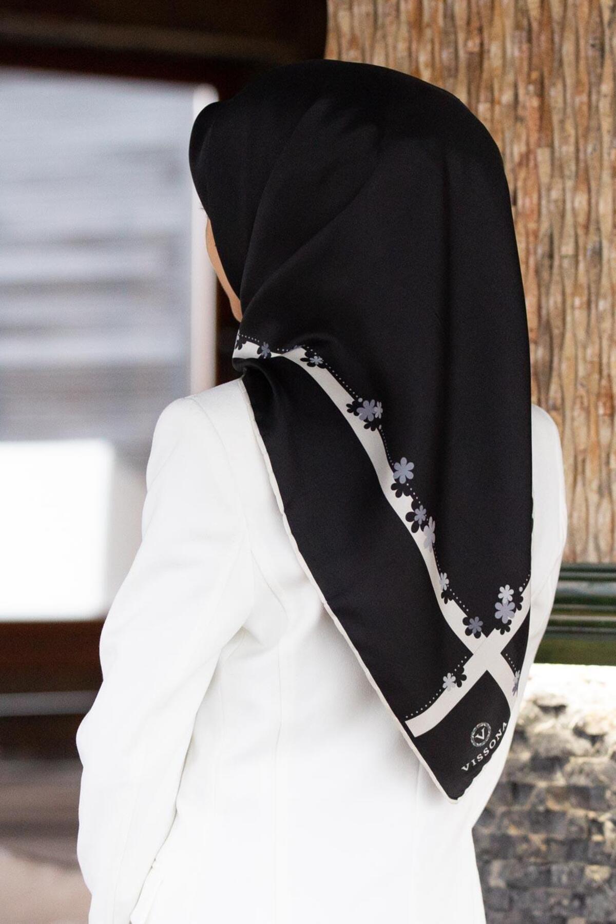%100 Twill İpek Çizgili Çiçek Desenli Saks - Siyah Renkli 90x90 Eşarp Dikim Şekli : El Dikişi %100 Twill İpek Çizgili Çiçek Desenli Saks - Siyah Renkli 90x90 Eşarp Dikim Şekli : El Dikişi 4197-11 90x90