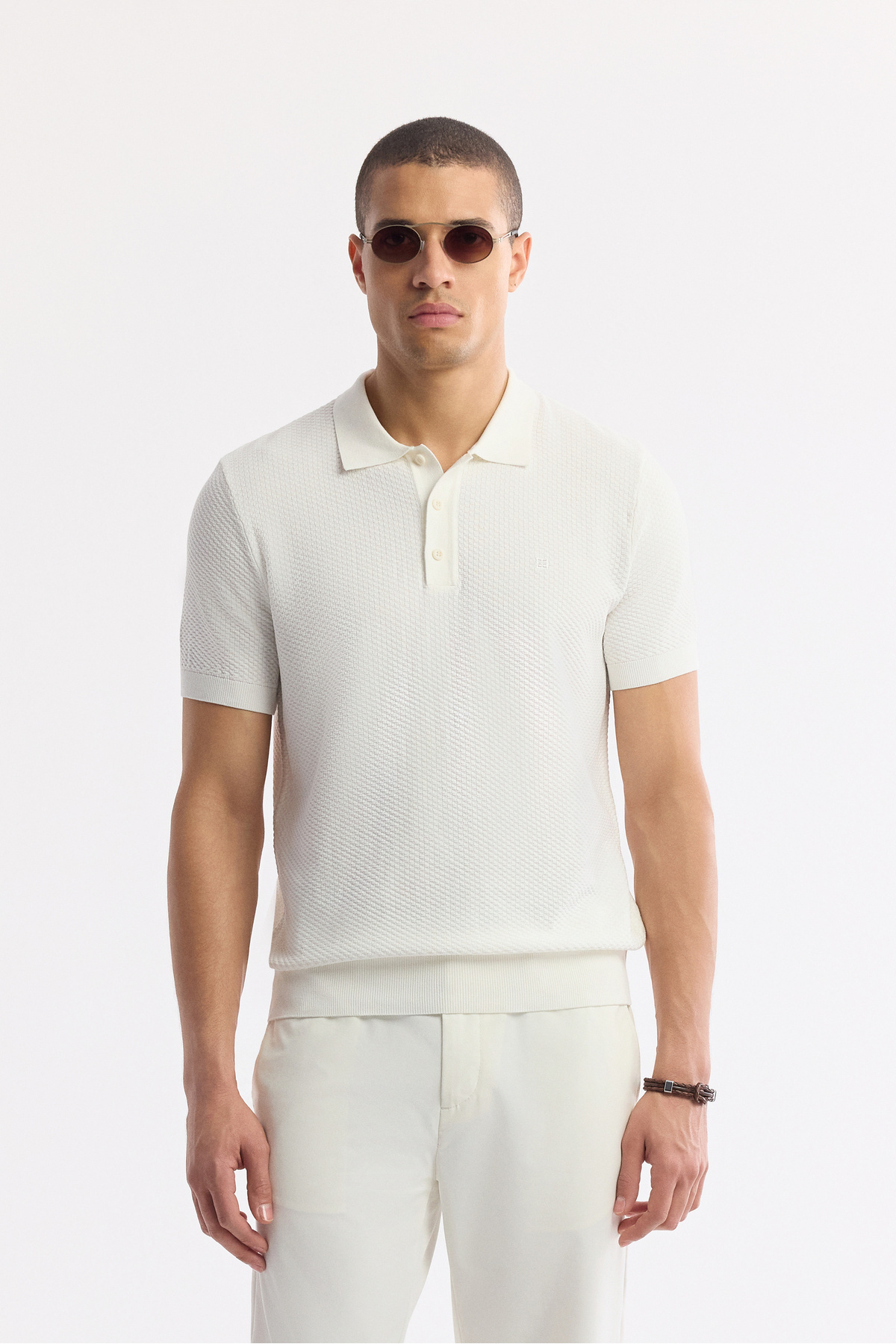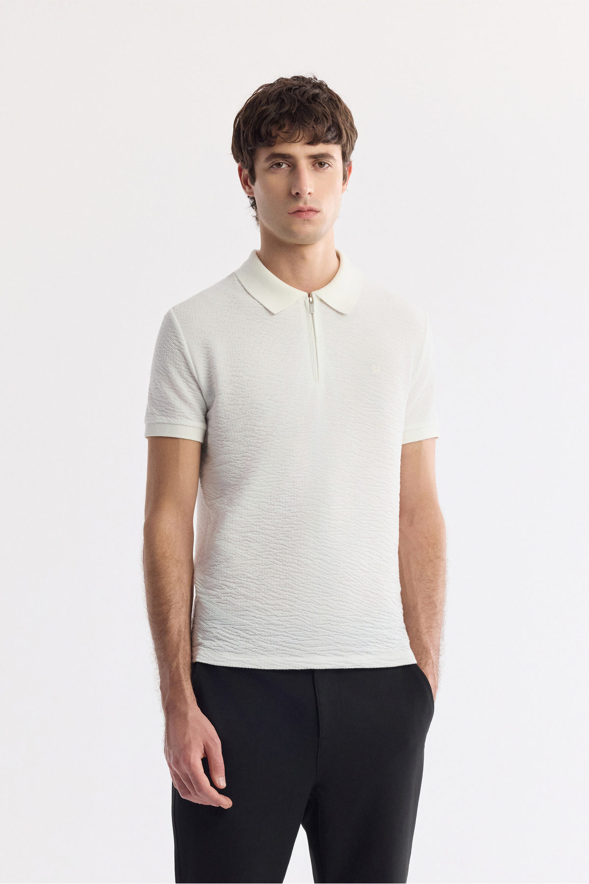 Erkek Beyaz Polo Yaka Dokulu Jakarlı Regular Fit T-Shirt A51Y1019 Erkek Beyaz Polo Yaka Dokulu Jakarlı Regular Fit T-Shirt A51Y1019 3XL