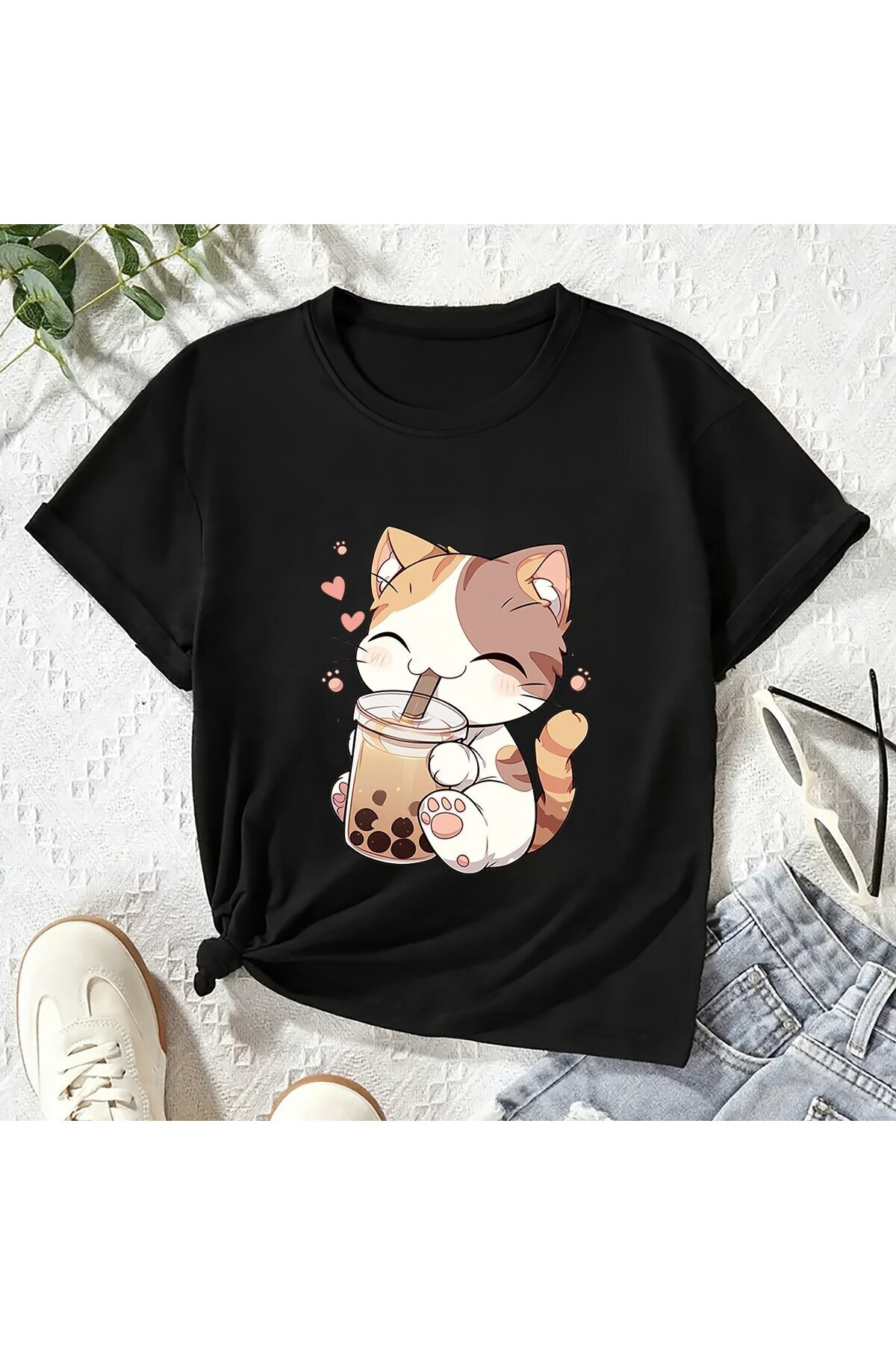 Kızın Sevimli Kedisi ve Balon Çay Desenli Tişört Kızın Sevimli Kedisi ve Balon Çay Desenli Tişört 22089 12-13 Yaş