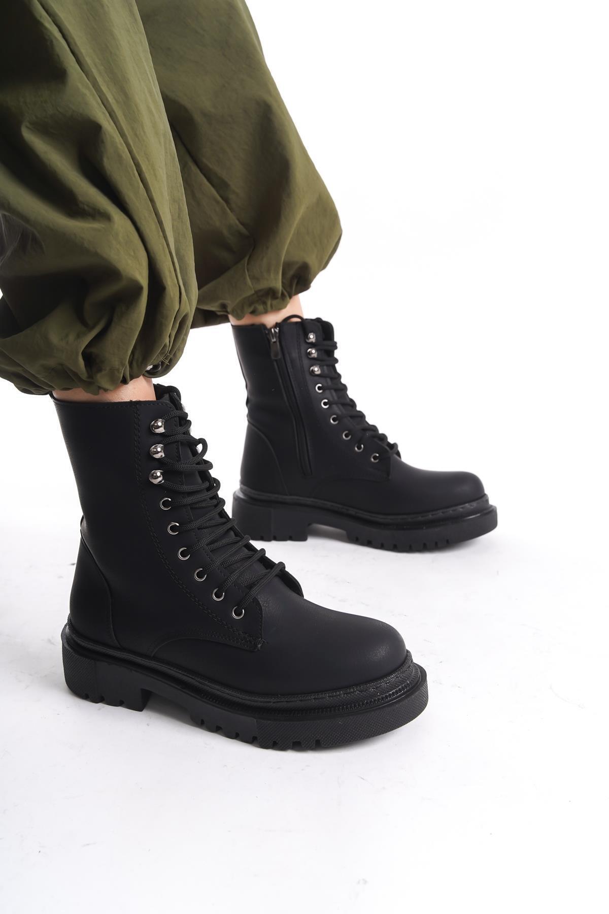 Kadın Siyah Günlük Postal Bot Rahat Taban Bağcıklı ve Fermuarlı KIşlık Ayakkabı Kadın Siyah Günlük Postal Bot Rahat Taban Bağcıklı ve Fermuarlı KIşlık Ayakkabı 166.009 40