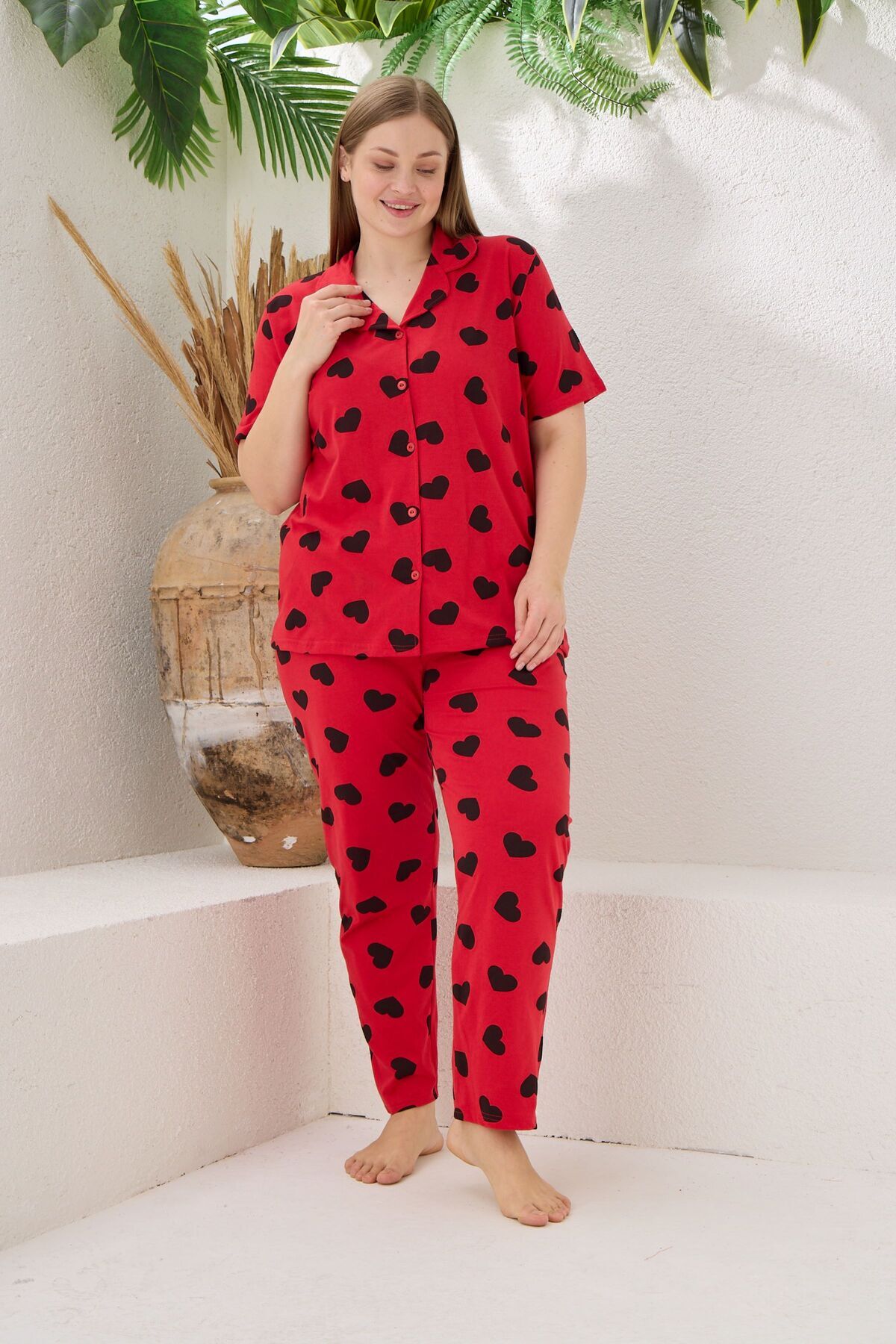 Kadın Battal Kısa Kollu Pamuklu Önden Düğmeli Pijama Takımı Kadın Battal Kısa Kollu Pamuklu Önden Düğmeli Pijama Takımı BATTALDÜĞMELİ 6XL