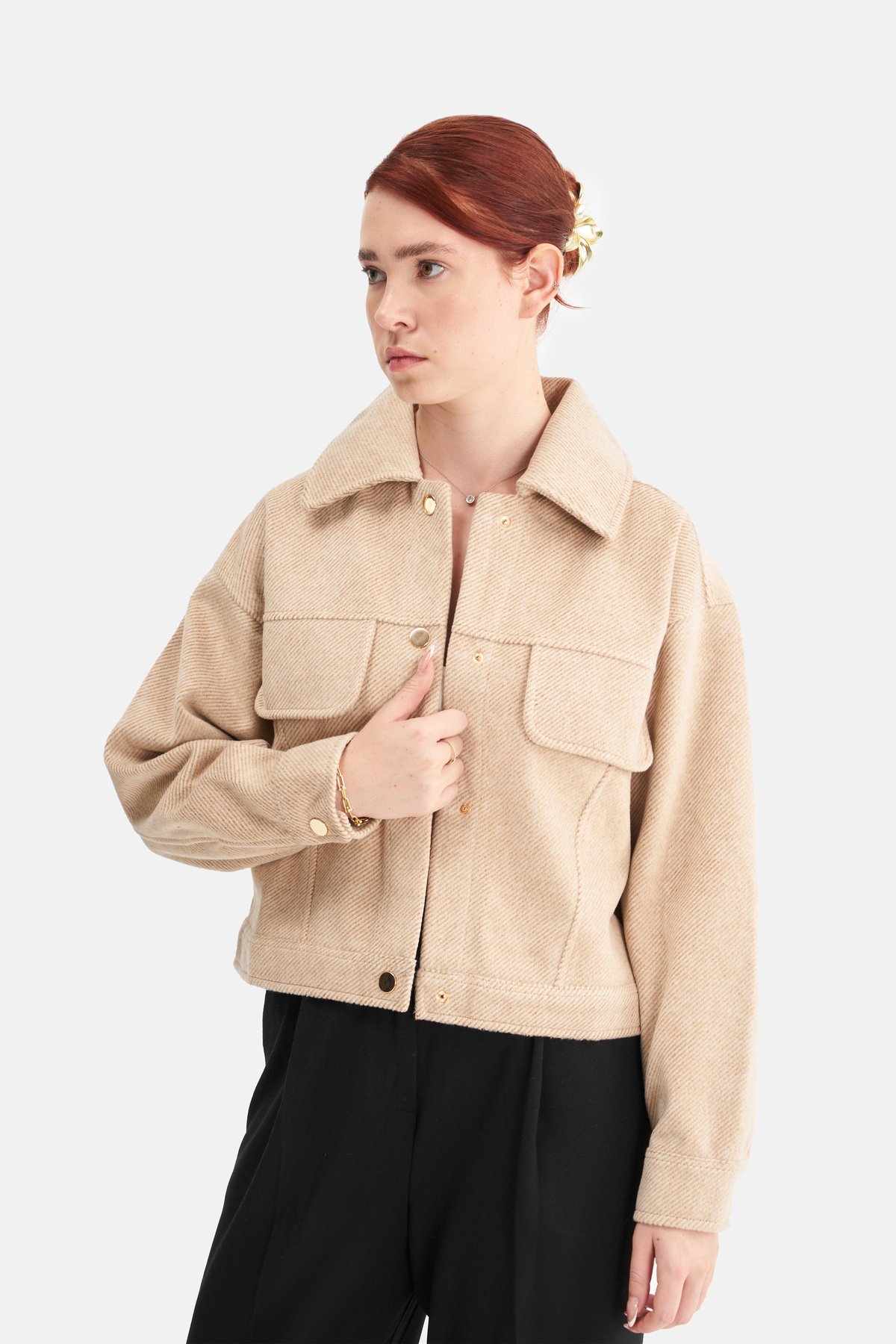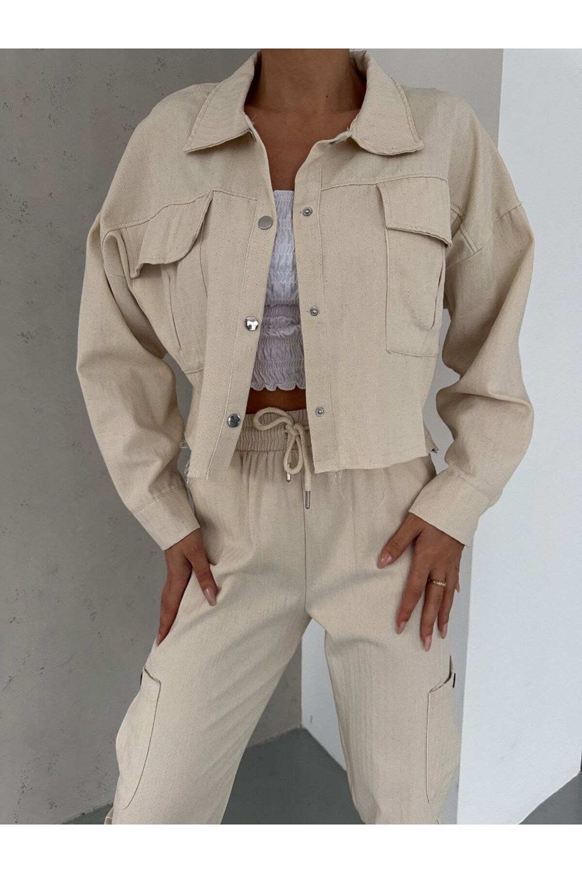 Kadın Cepli Çıt Çıtlı Rahat Kesim Keten Ceket Kadın Cepli Çıt Çıtlı Rahat Kesim Keten Ceket keten ceket XL