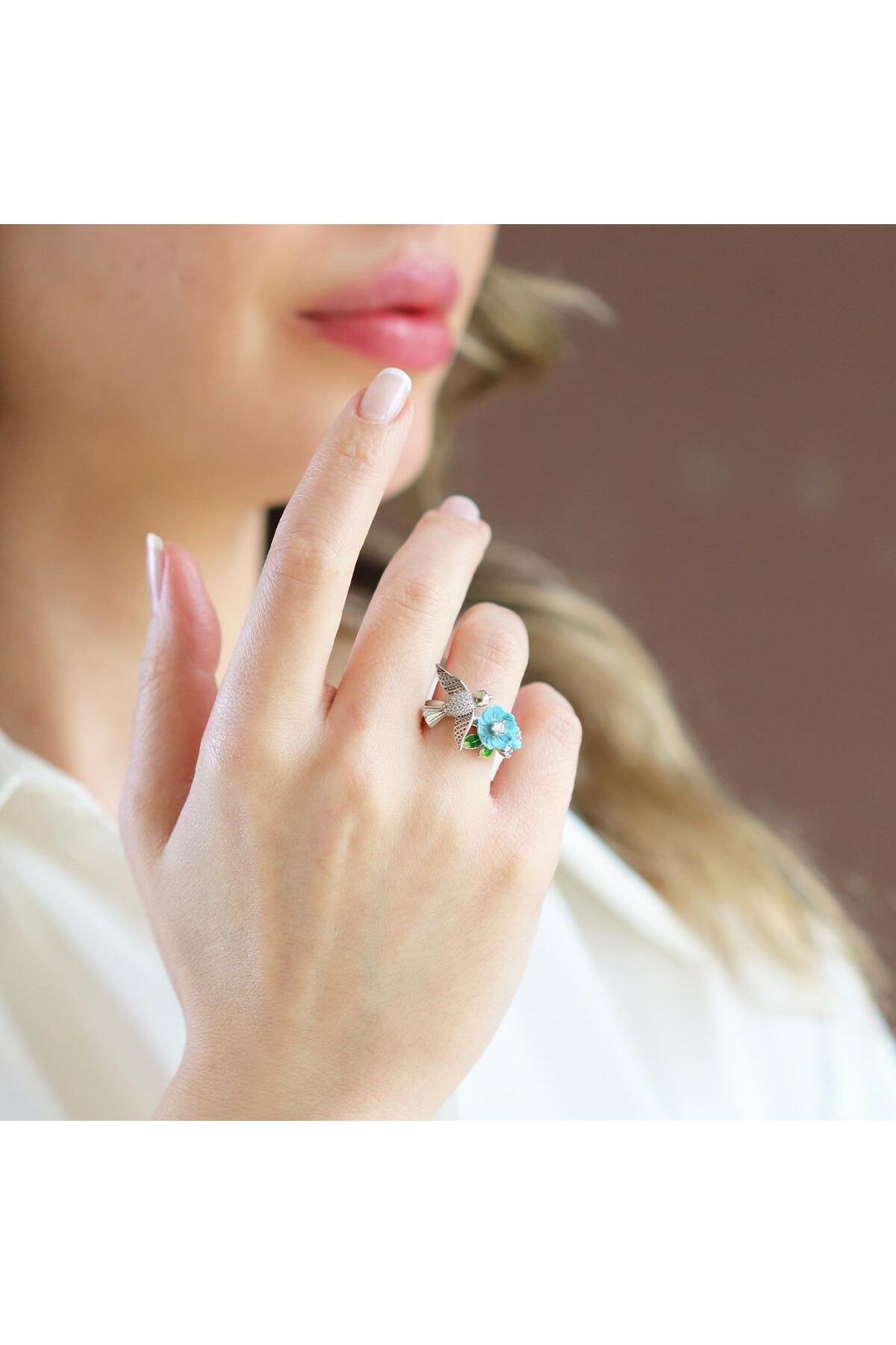 Kuşlu Frezya Çiçeği Turkuaz Gümüş Yüzük Kuşlu Frezya Çiçeği Turkuaz Gümüş Yüzük ZRYZK000012066 22