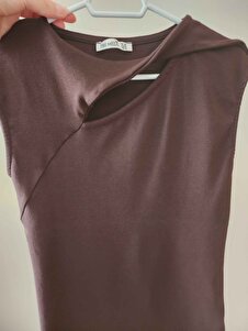 Kadın Kahve Yeni Sezon Modal Kumaş Damla Yaka Sıfır Kol Kadın Kahve Yeni Sezon Modal Kumaş Damla Yaka Sıfır Kol BLZ-202541 L