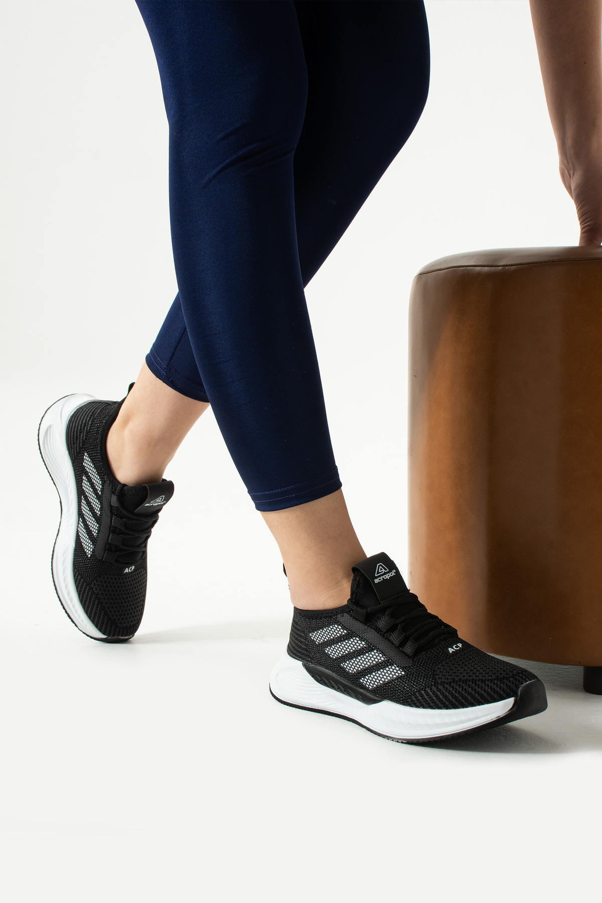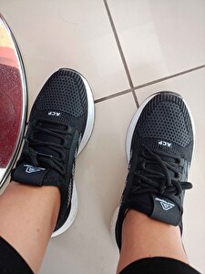 Kadın Siyah Beyaz Bağcıklı Ortopedik Fileli Triko Hafif Taban Sneaker Günlük Yürüyüş Spor Ayakkabı Kadın Siyah Beyaz Bağcıklı Ortopedik Fileli Triko Hafif Taban Sneaker Günlük Yürüyüş Spor Ayakkabı ACR141K 40