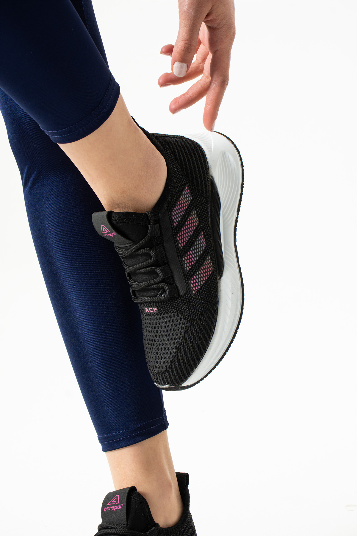 Kadın Siyah Fuşya Bağcıklı Ortopedik Fileli Triko Hafif Taban Sneaker Günlük Yürüyüş Spor Ayakkabı Kadın Siyah Fuşya Bağcıklı Ortopedik Fileli Triko Hafif Taban Sneaker Günlük Yürüyüş Spor Ayakkabı ACR141K 40