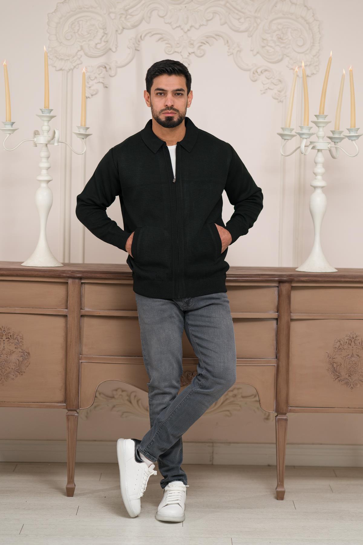 Pilot Yaka Fermuar Kapamalı Klasik Kesim Astarlı Çelik Örgü Hırka Pilot Yaka Fermuar Kapamalı Klasik Kesim Astarlı Çelik Örgü Hırka WW3500 2XL