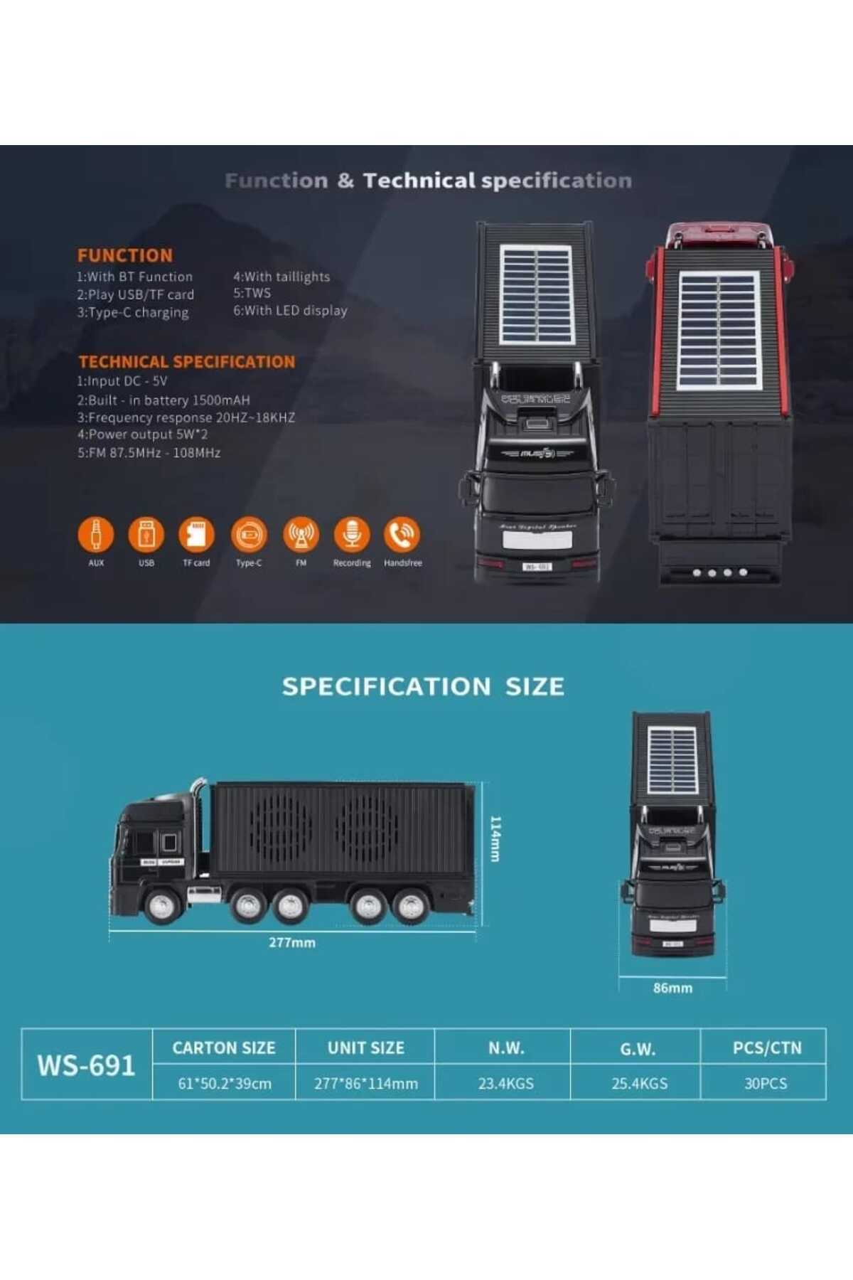 Güneş Enerjili Kamyon Tır Araba Kablosuz Bluetooth Hoparlör Speaker 10 Watt TWS Fm Radyo Sd Kart USB Güneş Enerjili Kamyon Tır Araba Kablosuz Bluetooth Hoparlör Speaker 10 Watt TWS Fm Radyo Sd Kart USB TYC410B97509BE8604 تک سایز