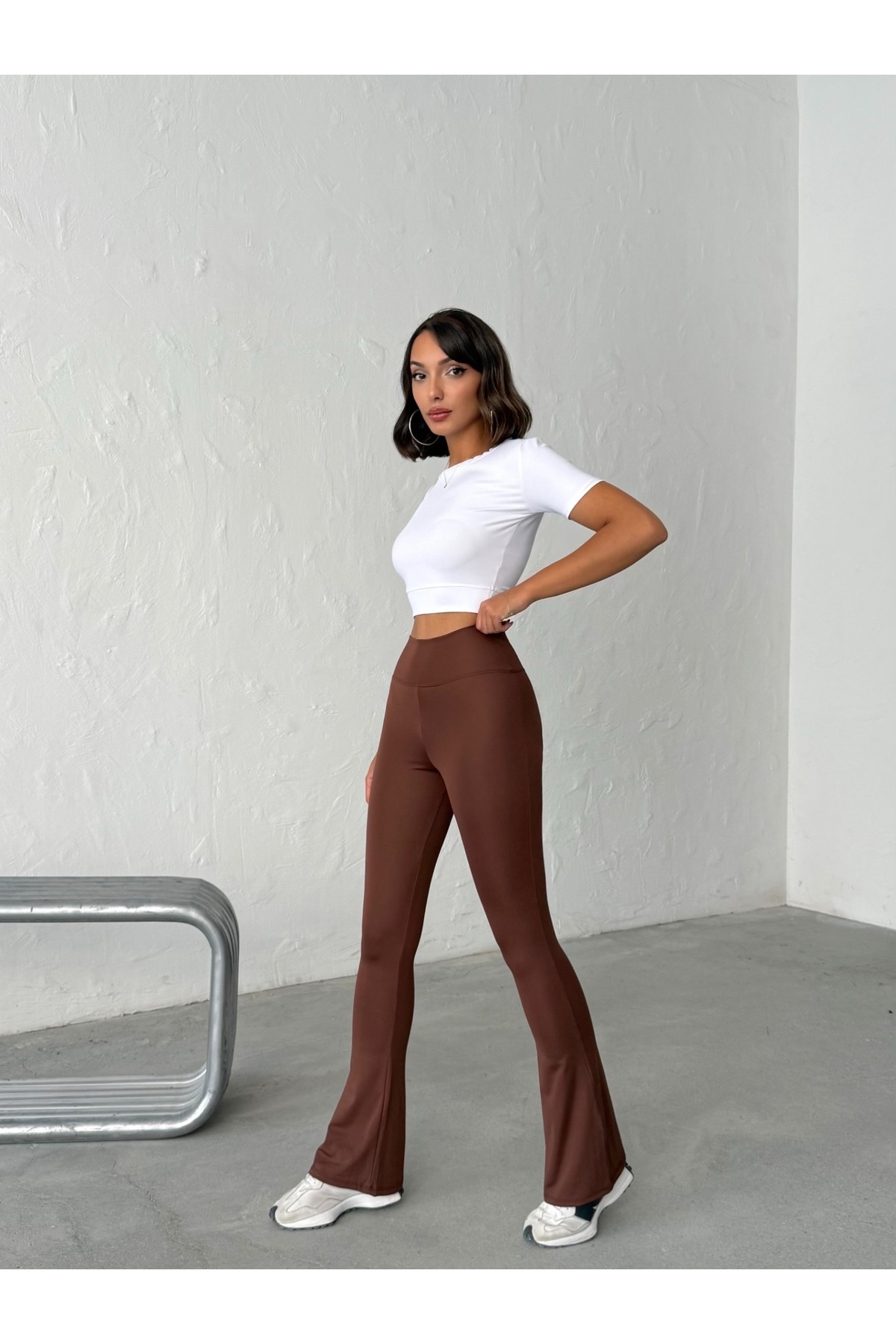 Yüksek Bel Toparlayıcı Ispanyol Paça Kahverengi Kadın Tayt Pantolon Yüksek Bel Toparlayıcı Ispanyol Paça Kahverengi Kadın Tayt Pantolon TY2025IPT1 2XL