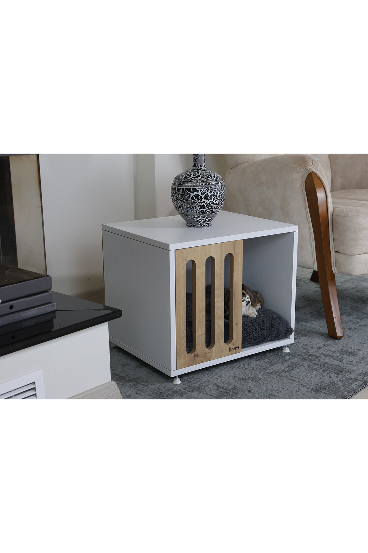 مشخصات فنی Modern Ahşap Kedi Köpek Evi رنگ سفید Menşei TR Bakım Talimatları (Genel) Nemli bir bezle silin. مشخصات کلی