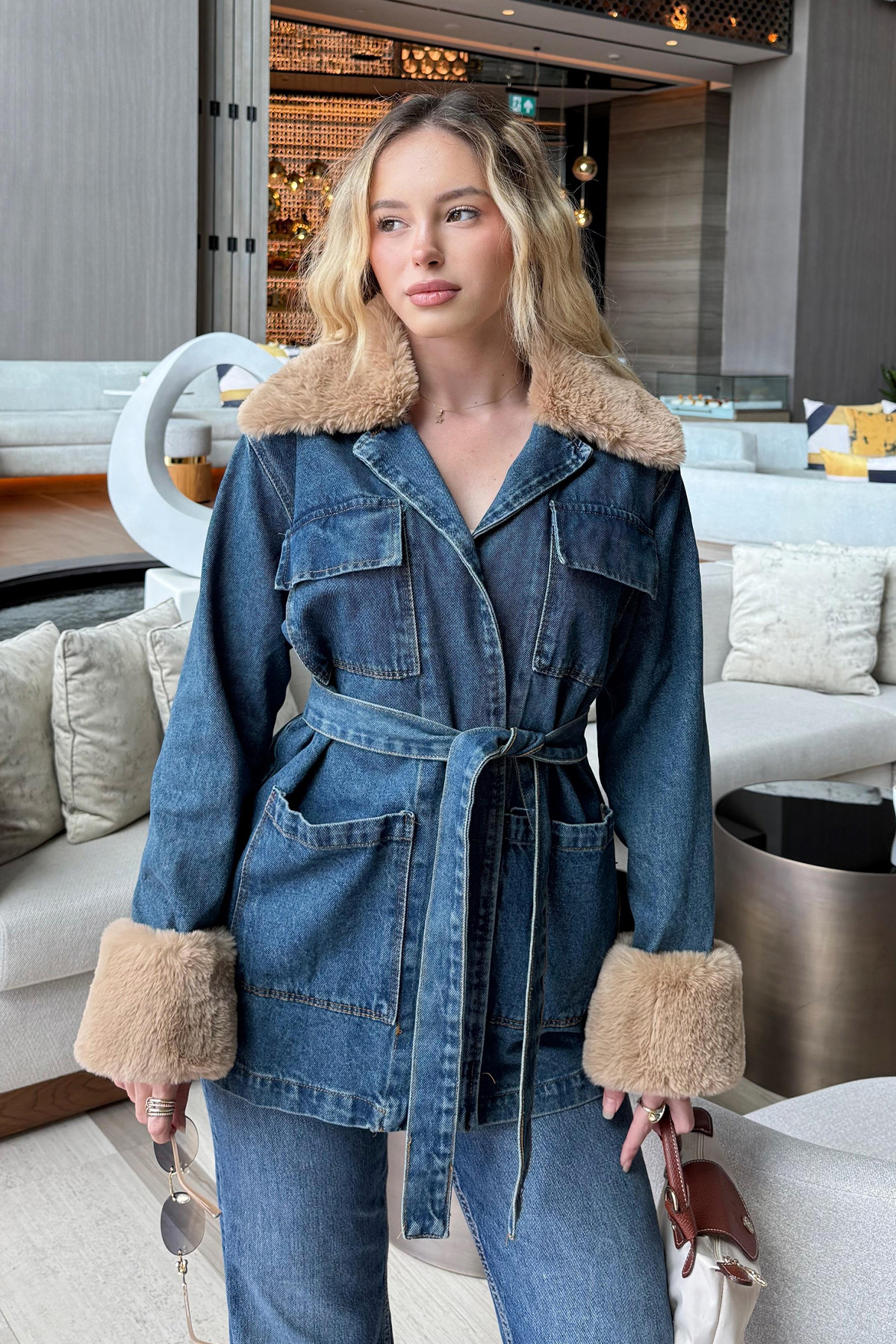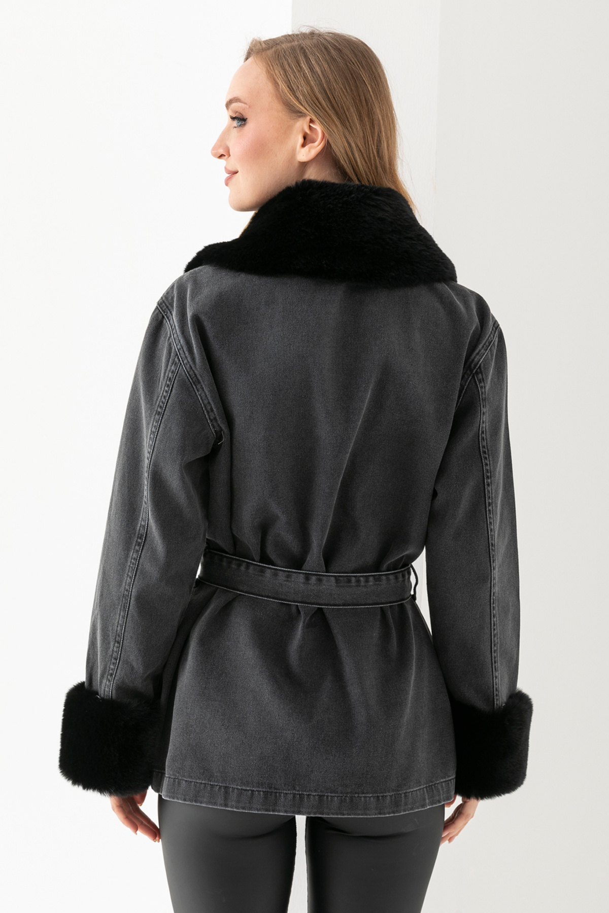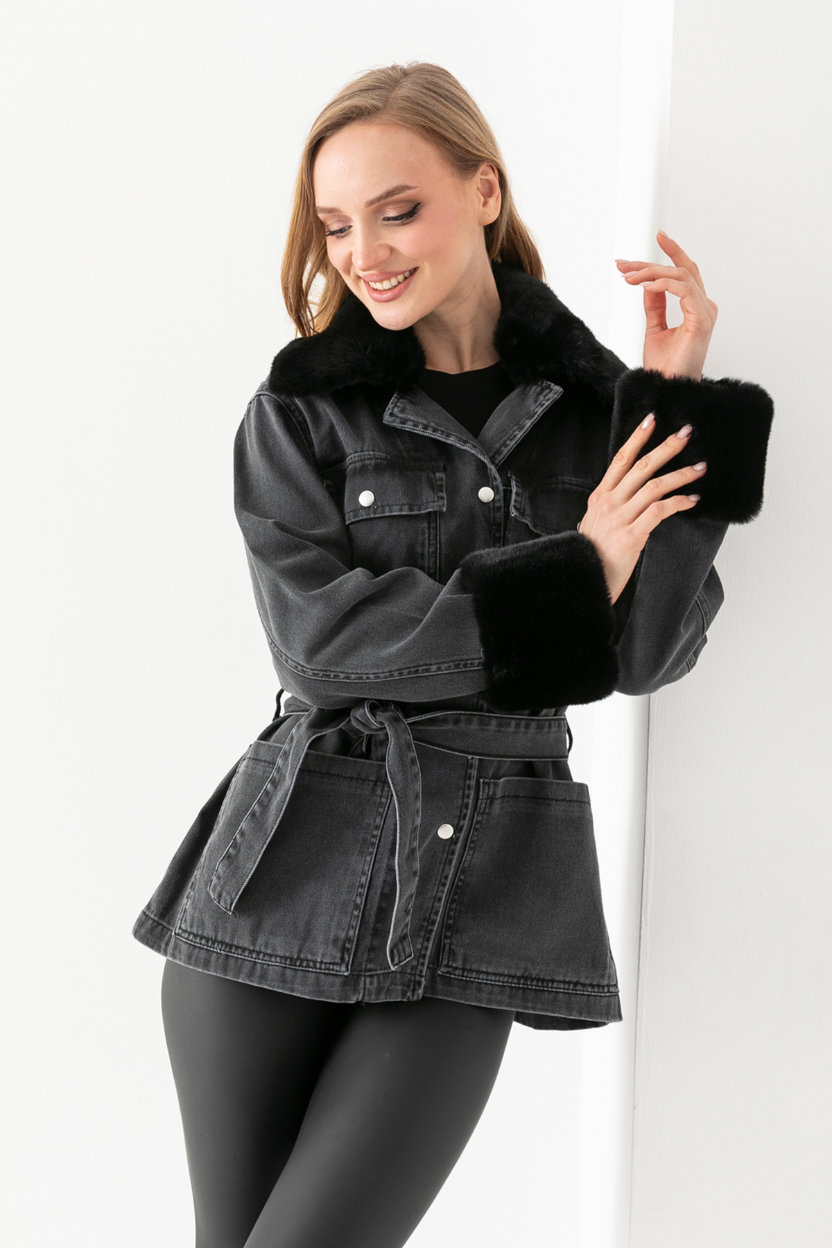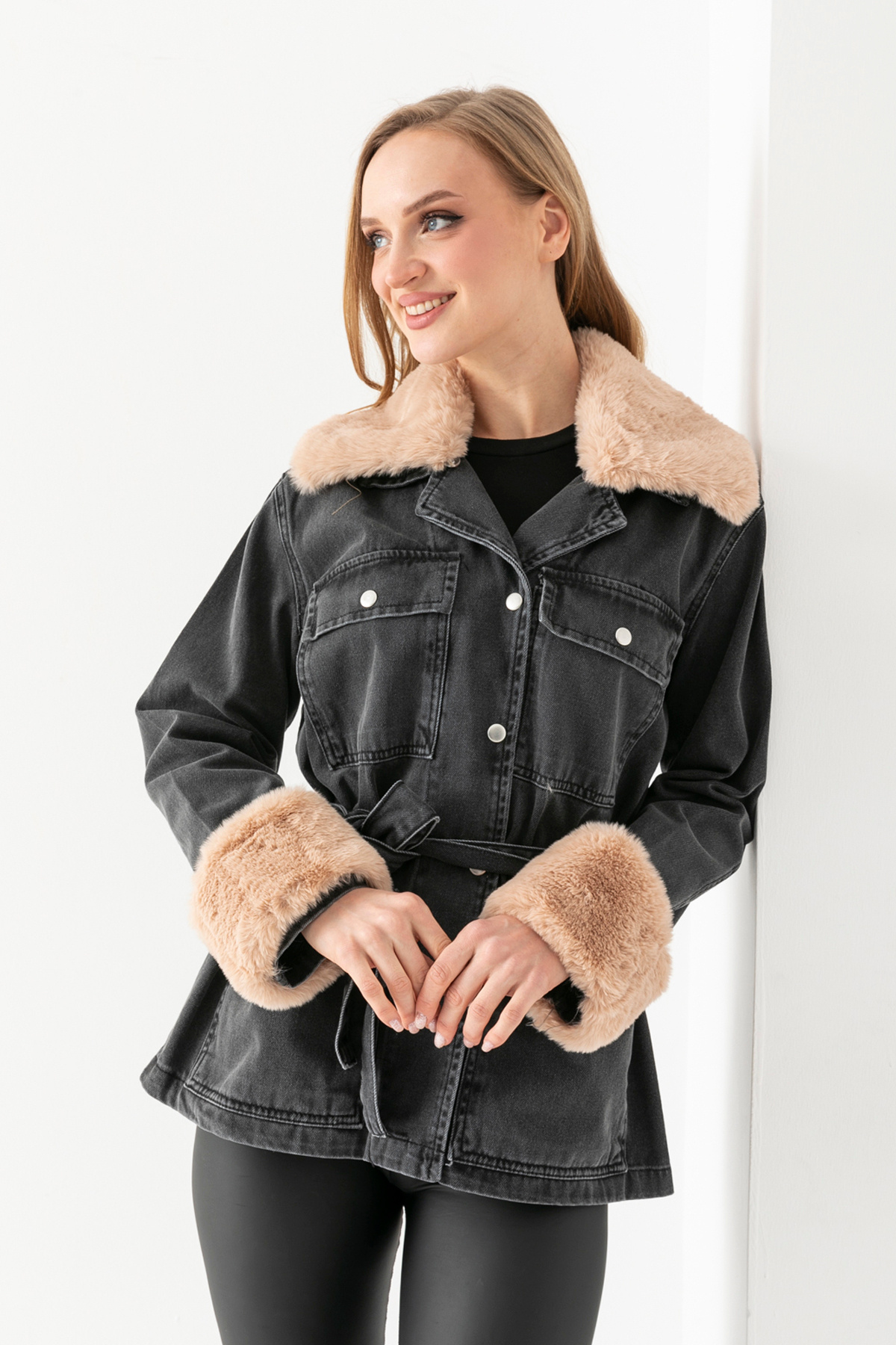 KÜRKLÜ SİYAH DENİM CEKET KÜRKLÜ SİYAH DENİM CEKET KRKSYH Standart