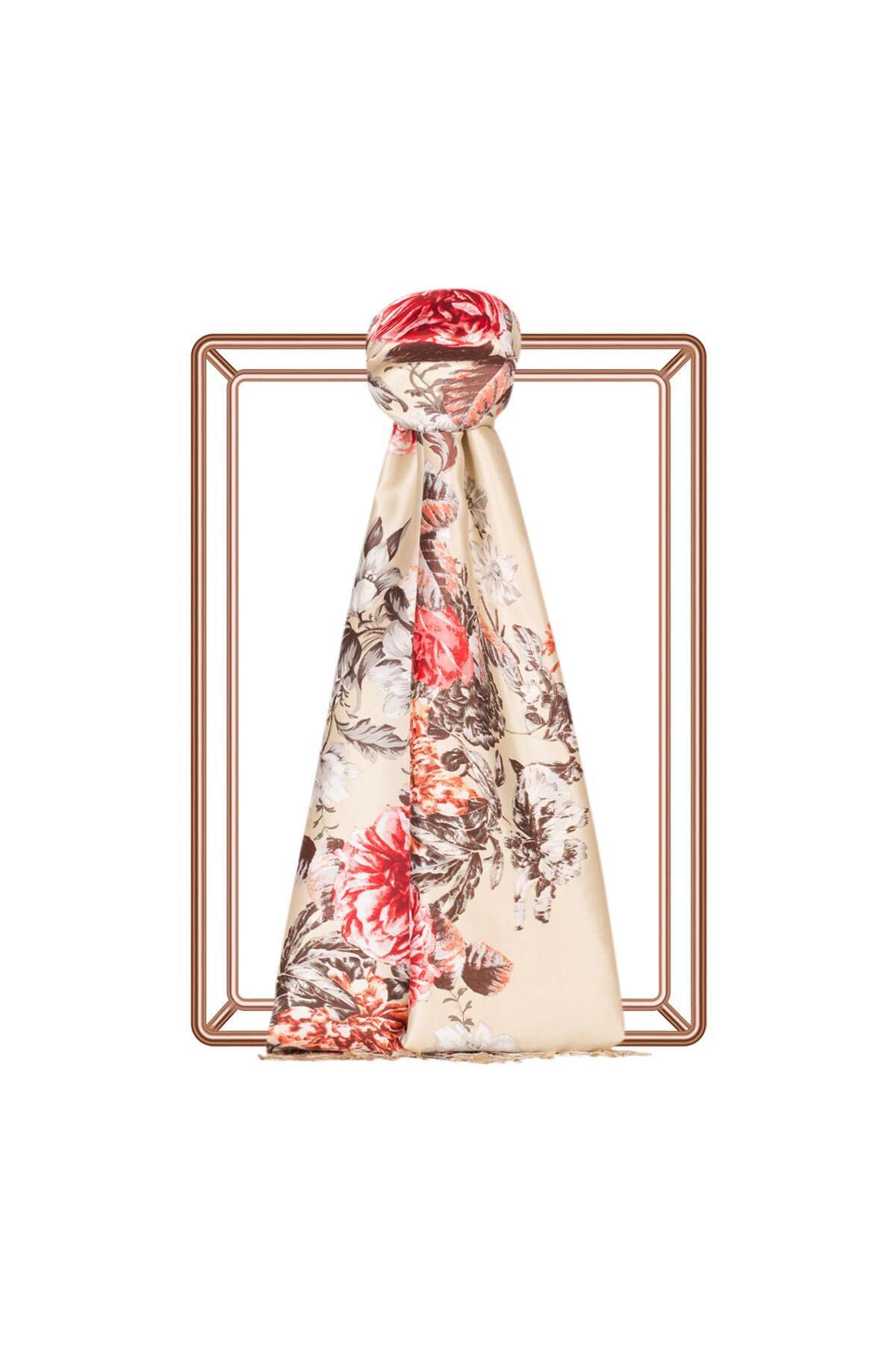 İpekevi Gül Deryası Desenli İpek Şal 5932-Krem Violet İpekevi Gül Deryası Desenli İpek Şal 5932-Krem Violet 70 x 200