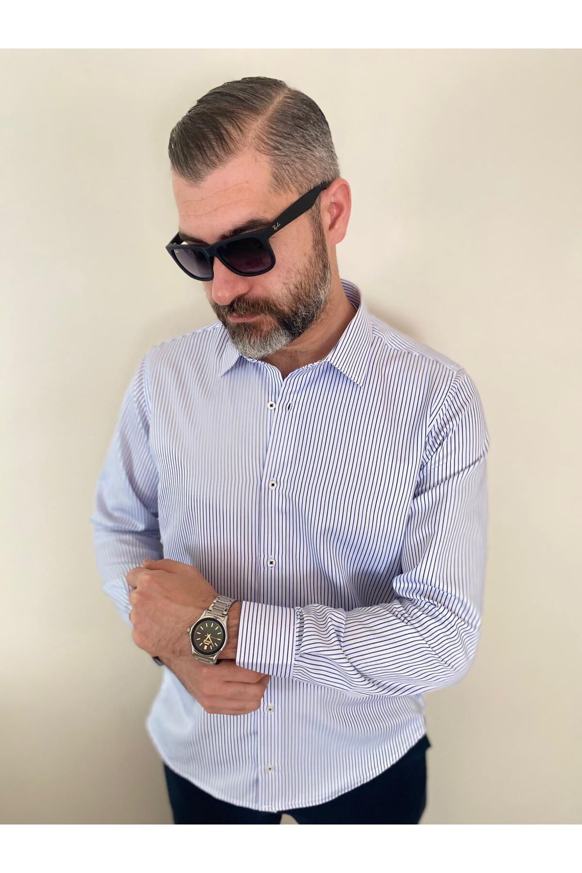 Slim Fit Düz Açık Mavi Dacron Gömlek Slim Fit Düz Açık Mavi Dacron Gömlek BNS0000076 4XL