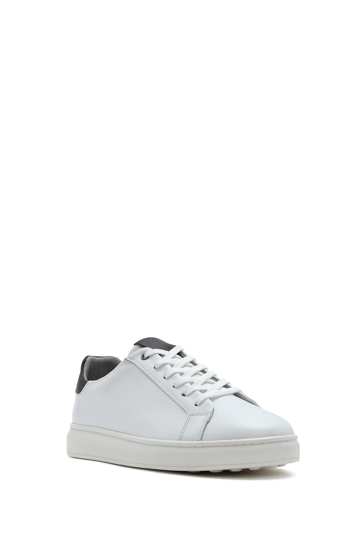 Erkek Beyaz Bağcıklı Deri Sneaker 25SFD674718 Erkek Beyaz Bağcıklı Deri Sneaker 25SFD674718 45