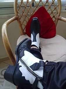 Siyah Beyaz Deri Kadın Topuklu Bot 01wr6000 Siyah Beyaz Deri Kadın Topuklu Bot 01wr6000 01WR6000 40