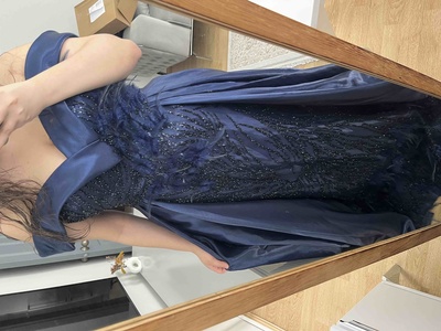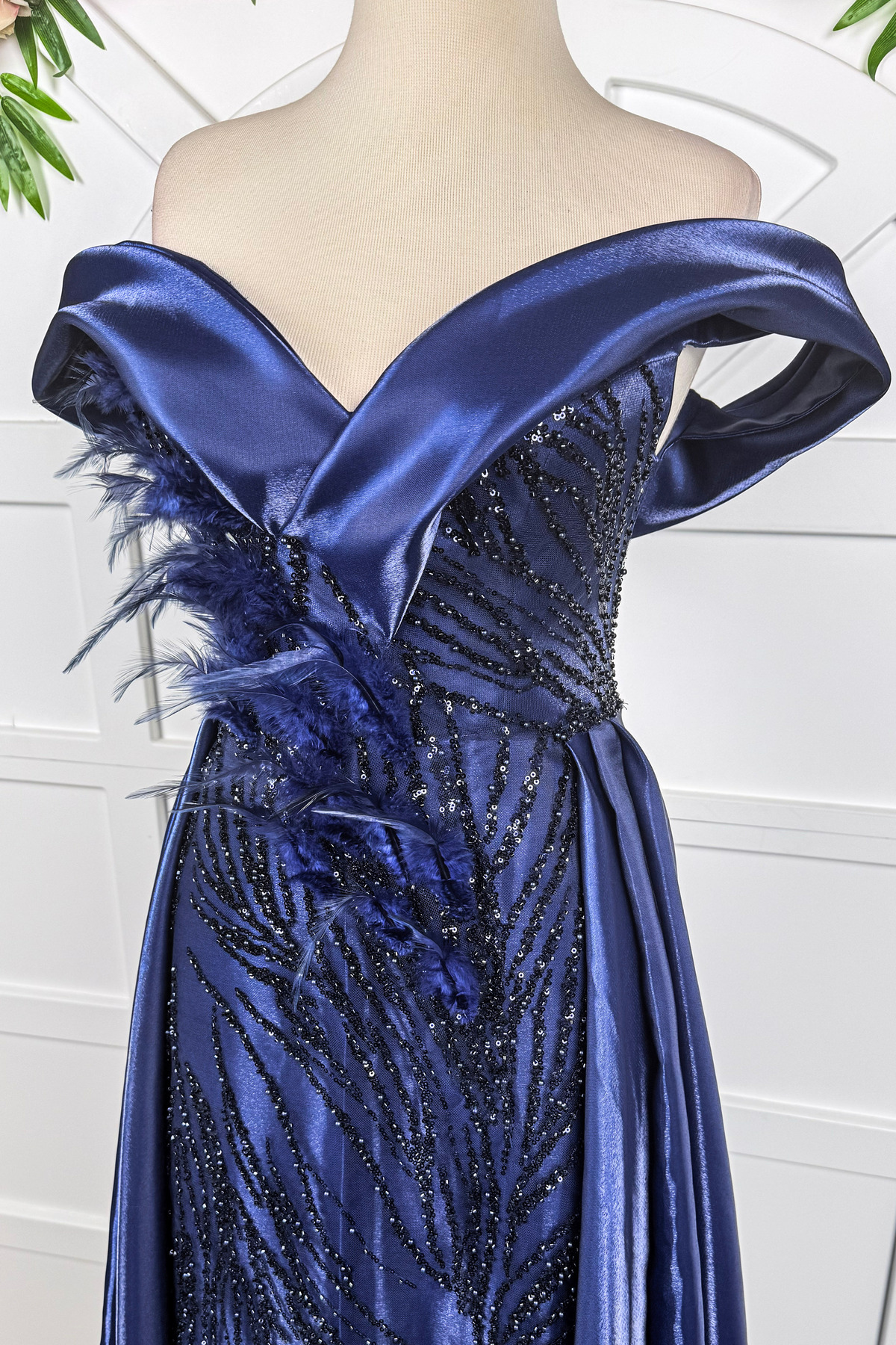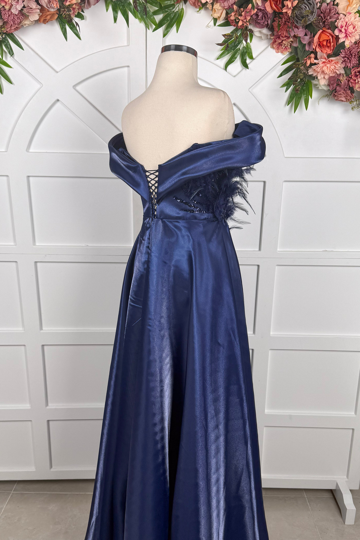 Lacivert Tüylü Dantel Kaplama Lizbon Saten Abiye Ve Gece Elbisesi Lacivert Tüylü Dantel Kaplama Lizbon Saten Abiye Ve Gece Elbisesi LM260125LST01 44
