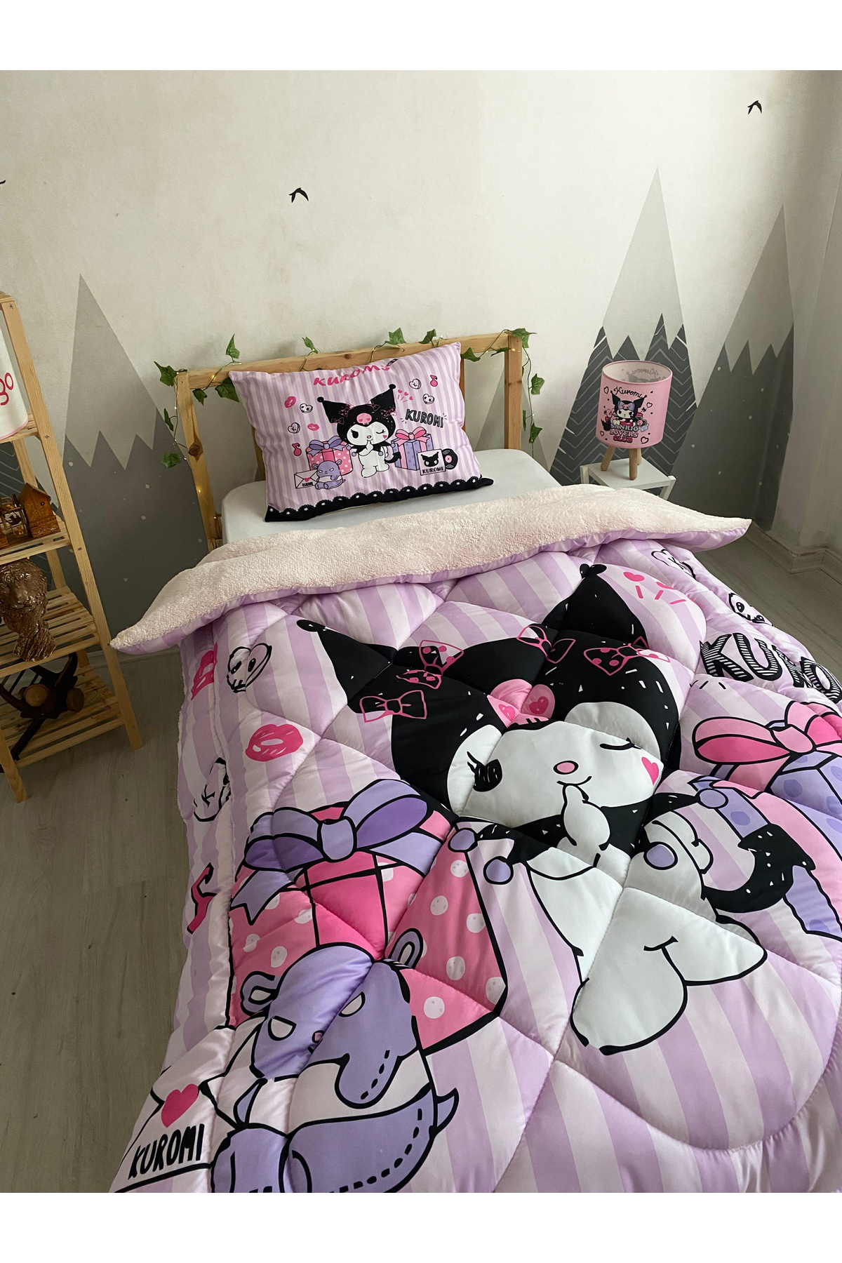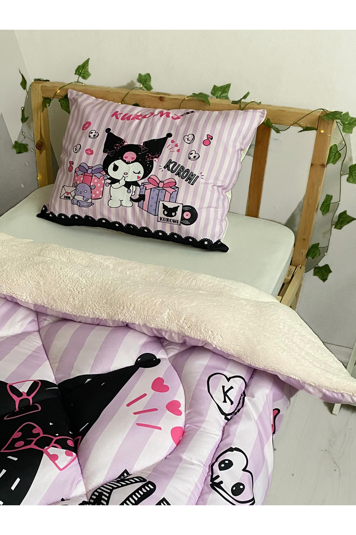 PELUŞ SİYAH PEMBE ŞERİTLİ KUROMİ BEBEK VE ÇOCUK ODASI KAPİTONE YORGAN PELUŞ SİYAH PEMBE ŞERİTLİ KUROMİ BEBEK VE ÇOCUK ODASI KAPİTONE YORGAN PLŞ-YORGAN-1259 تک سایز