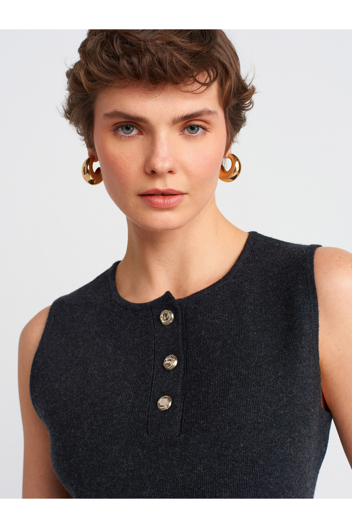 90244 Düğmeli Volanlı Triko Elbise-Antrasit 90244 Düğmeli Volanlı Triko Elbise-Antrasit 101A90244 Standart