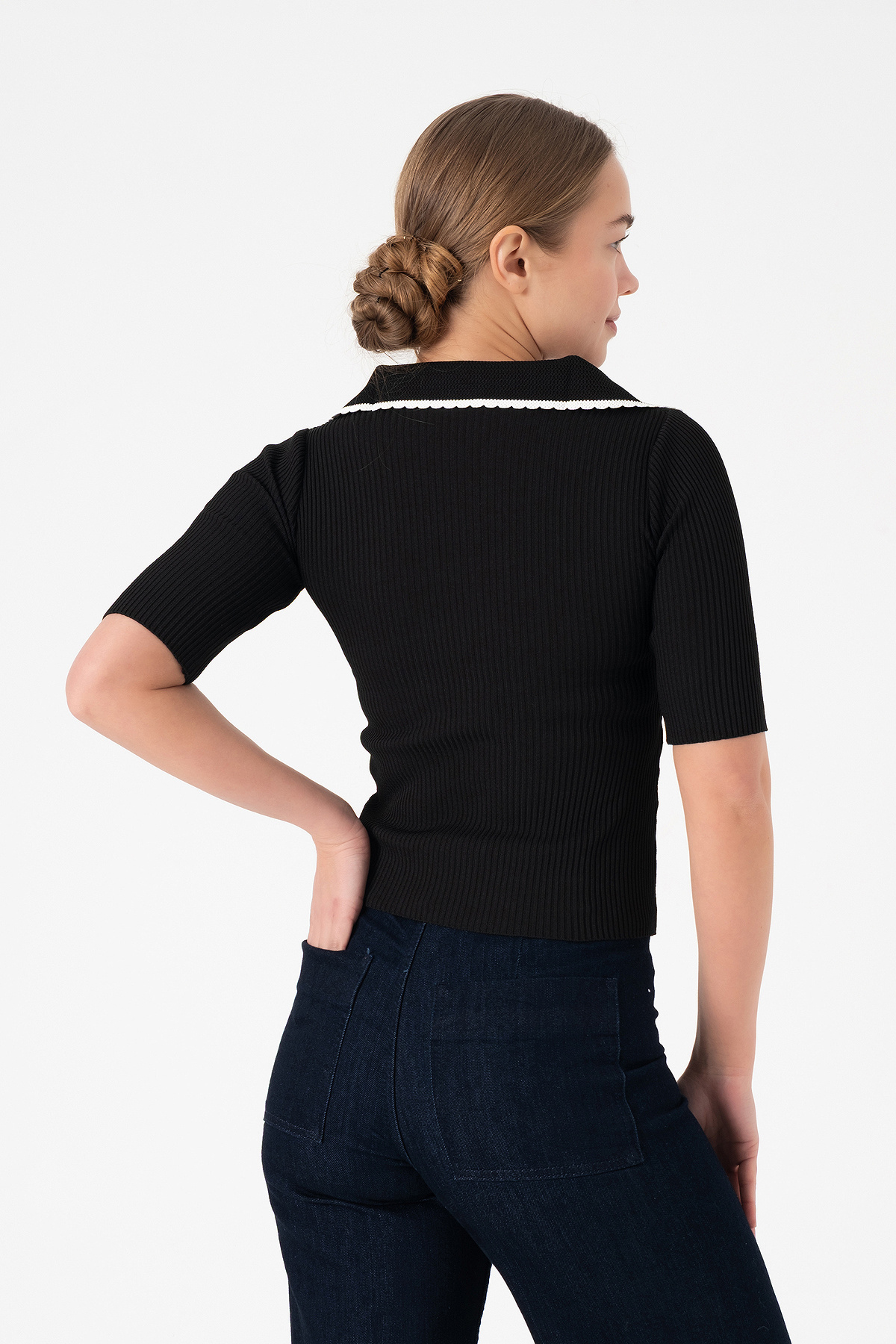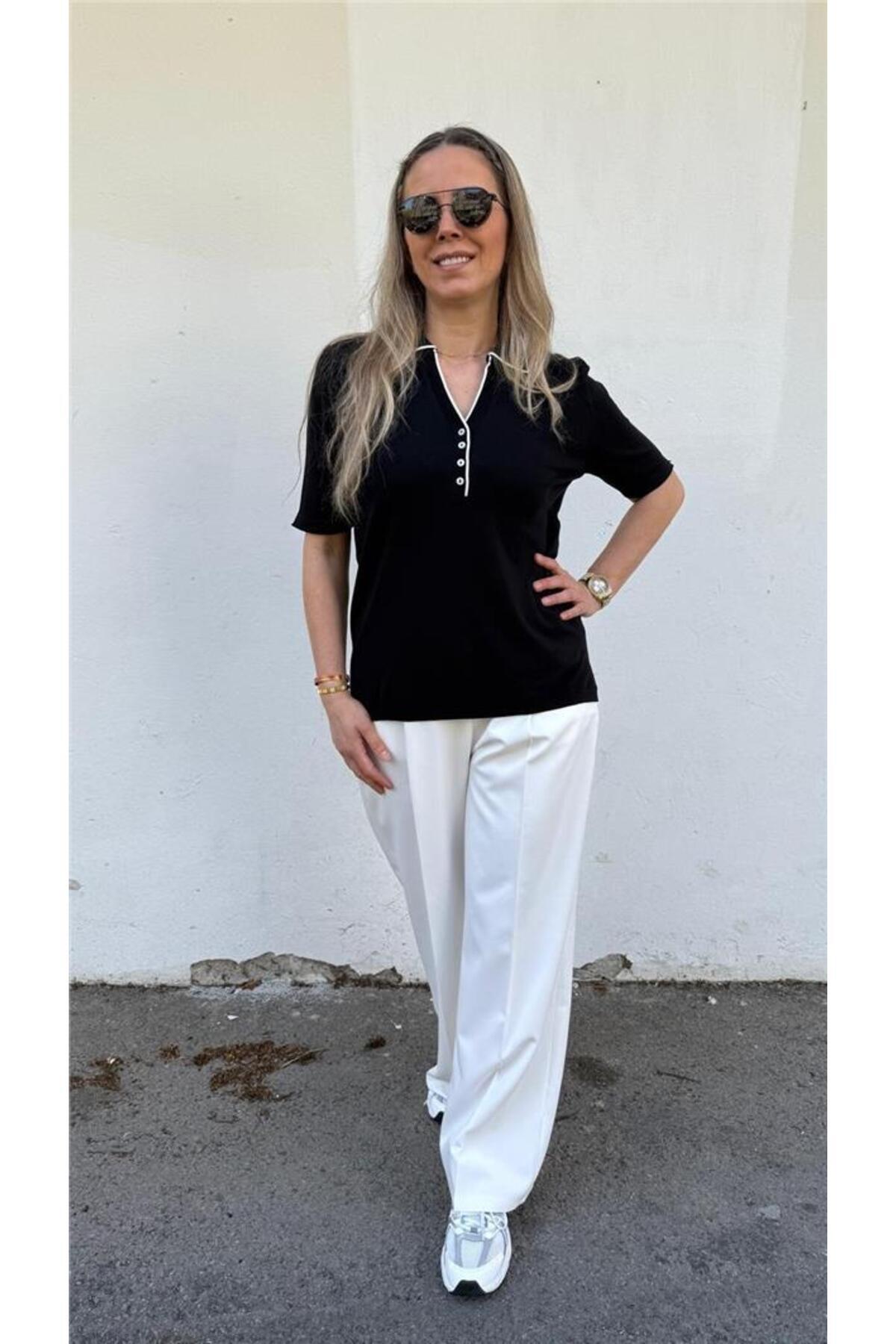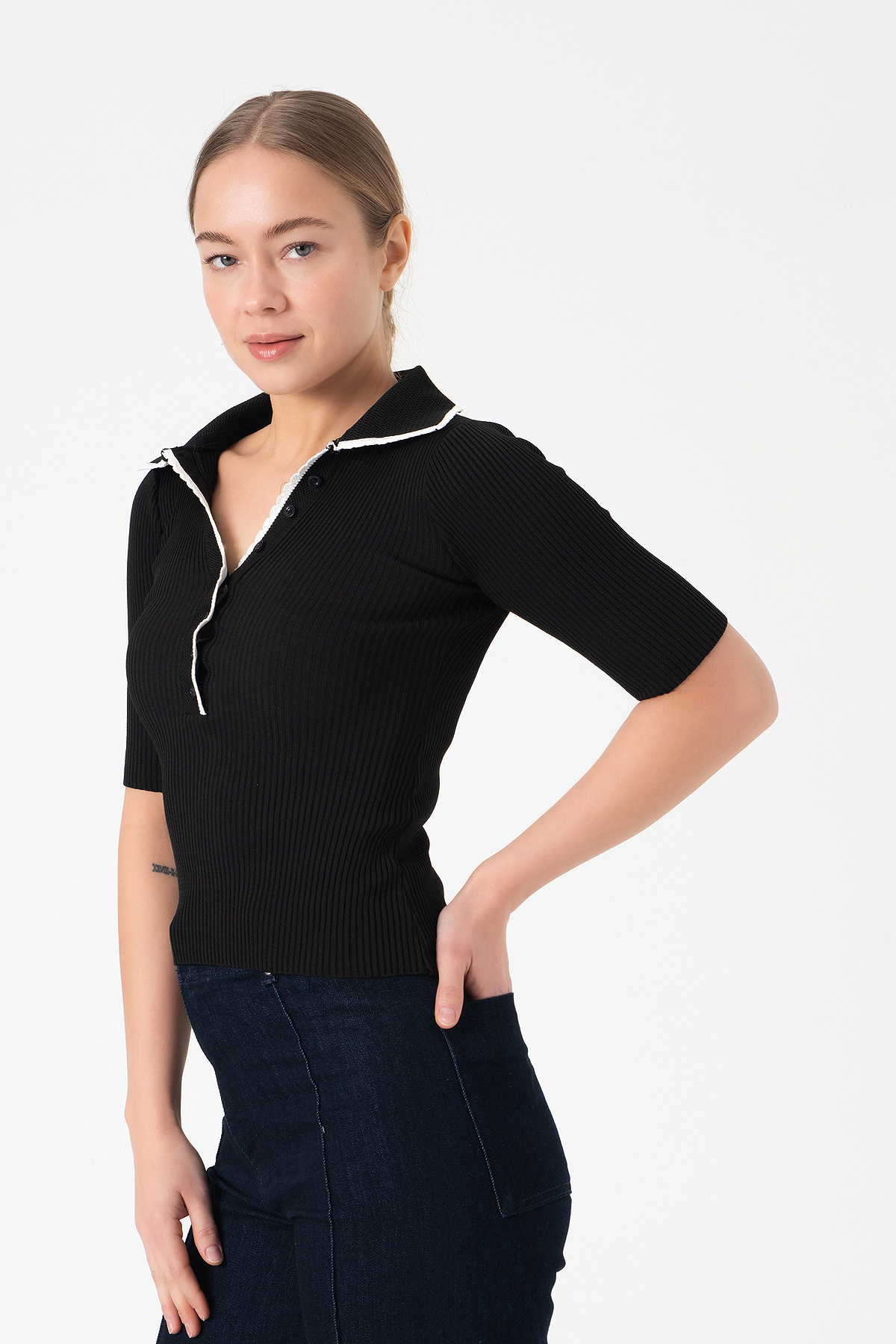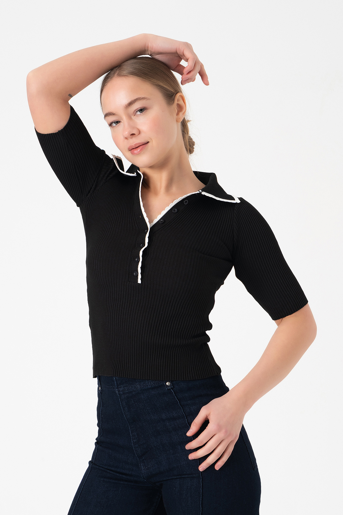 Polo Yaka Kısa Kollu Siyah Triko T-shirt Polo Yaka Kısa Kollu Siyah Triko T-shirt MR1001 S/M