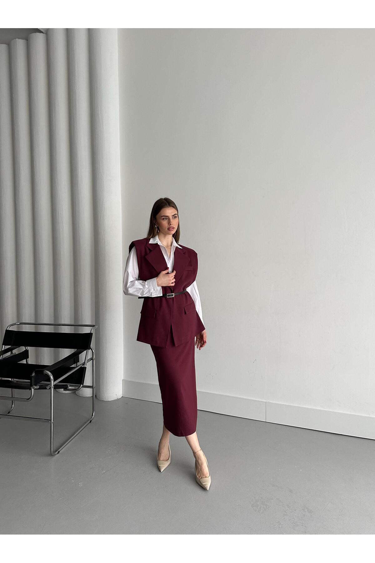 Bordo Kemerli Yelek Bordo Kemerli Yelek Efil - 7449 L