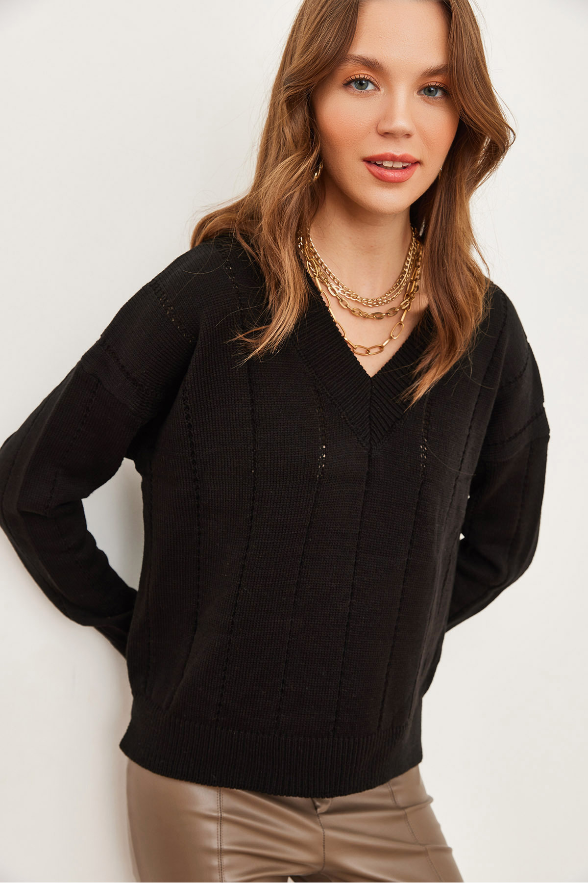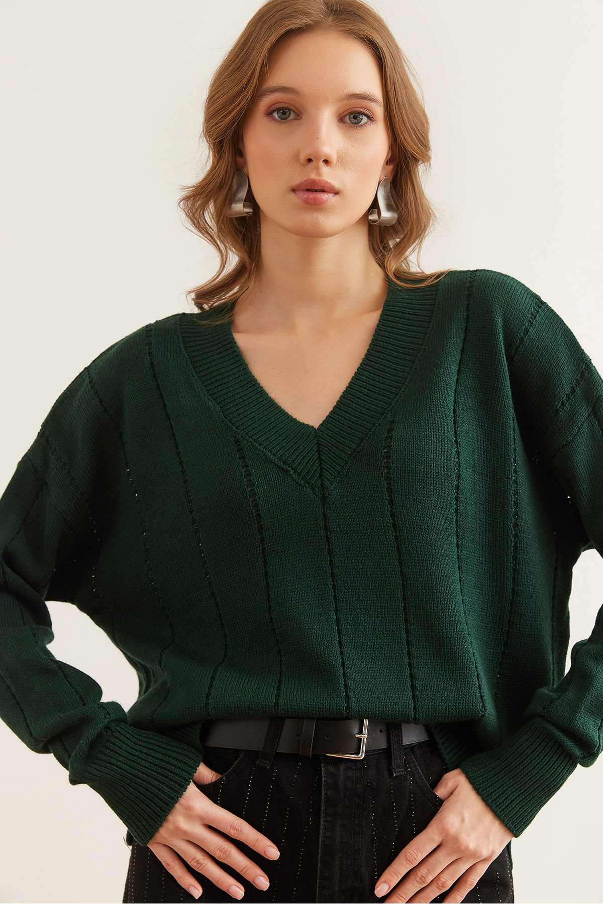 Kadın Kırmızı V Yaka Ajurlu Crop Triko Kazak KZK-19000816 Kadın Kırmızı V Yaka Ajurlu Crop Triko Kazak KZK-19000816 S/M