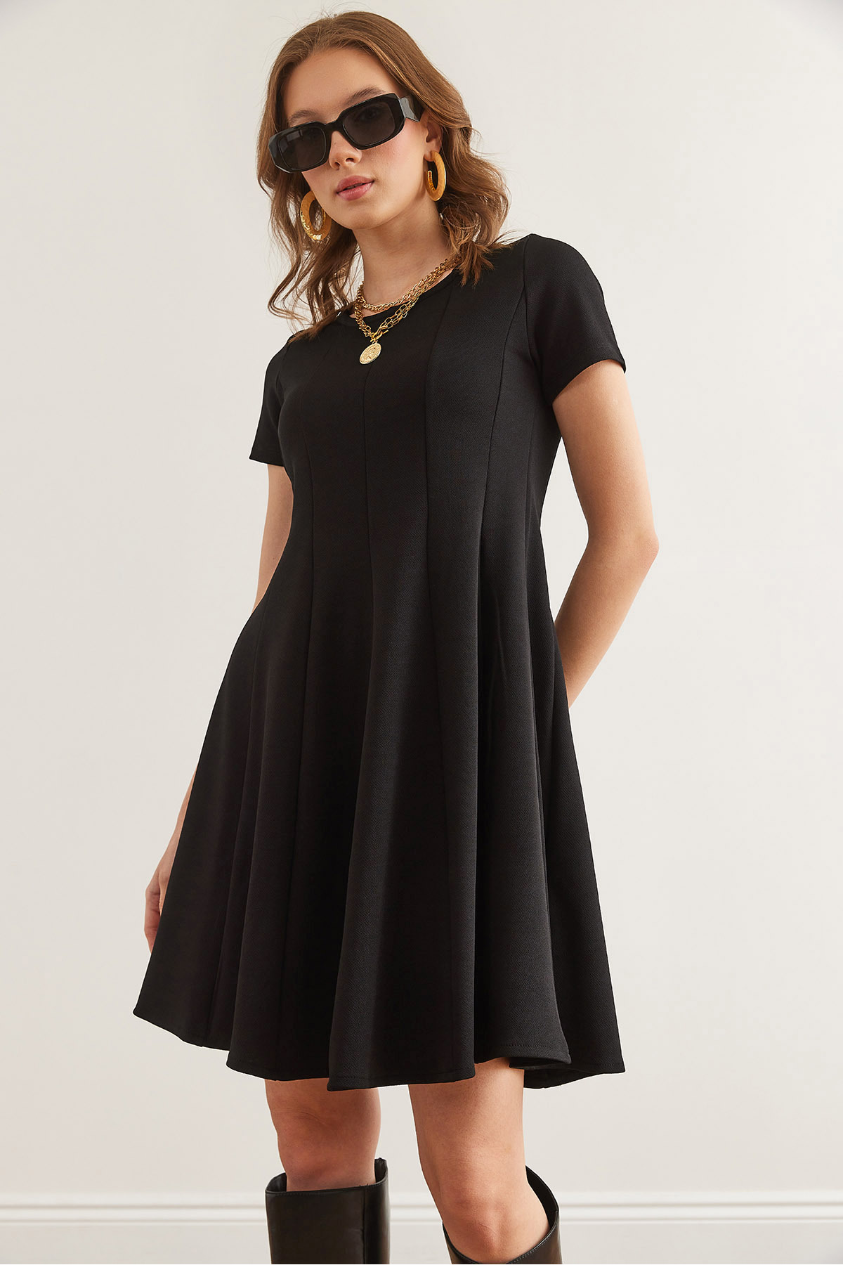 Kadın Kahverengi Parçalı Trend Mini Kloş Elbise ELB-19002344 Kadın Kahverengi Parçalı Trend Mini Kloş Elbise ELB-19002344 L