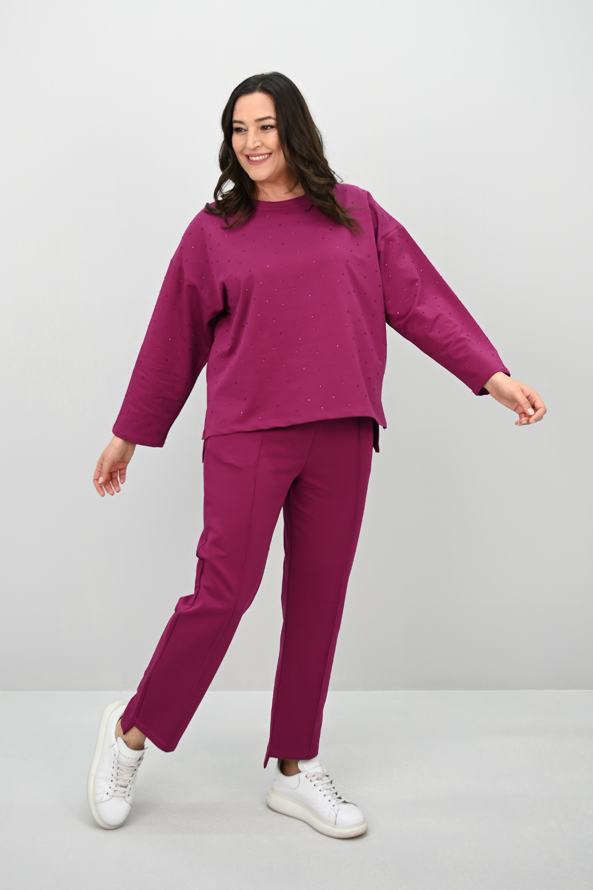 Kadın Büyük Beden Truvakar Kol Taş İşleme Detaylı Eşofman Takımı 8147-25 Kadın Büyük Beden Truvakar Kol Taş İşleme Detaylı Eşofman Takımı 8147-25 ADR-8147W024ATK1 5XL