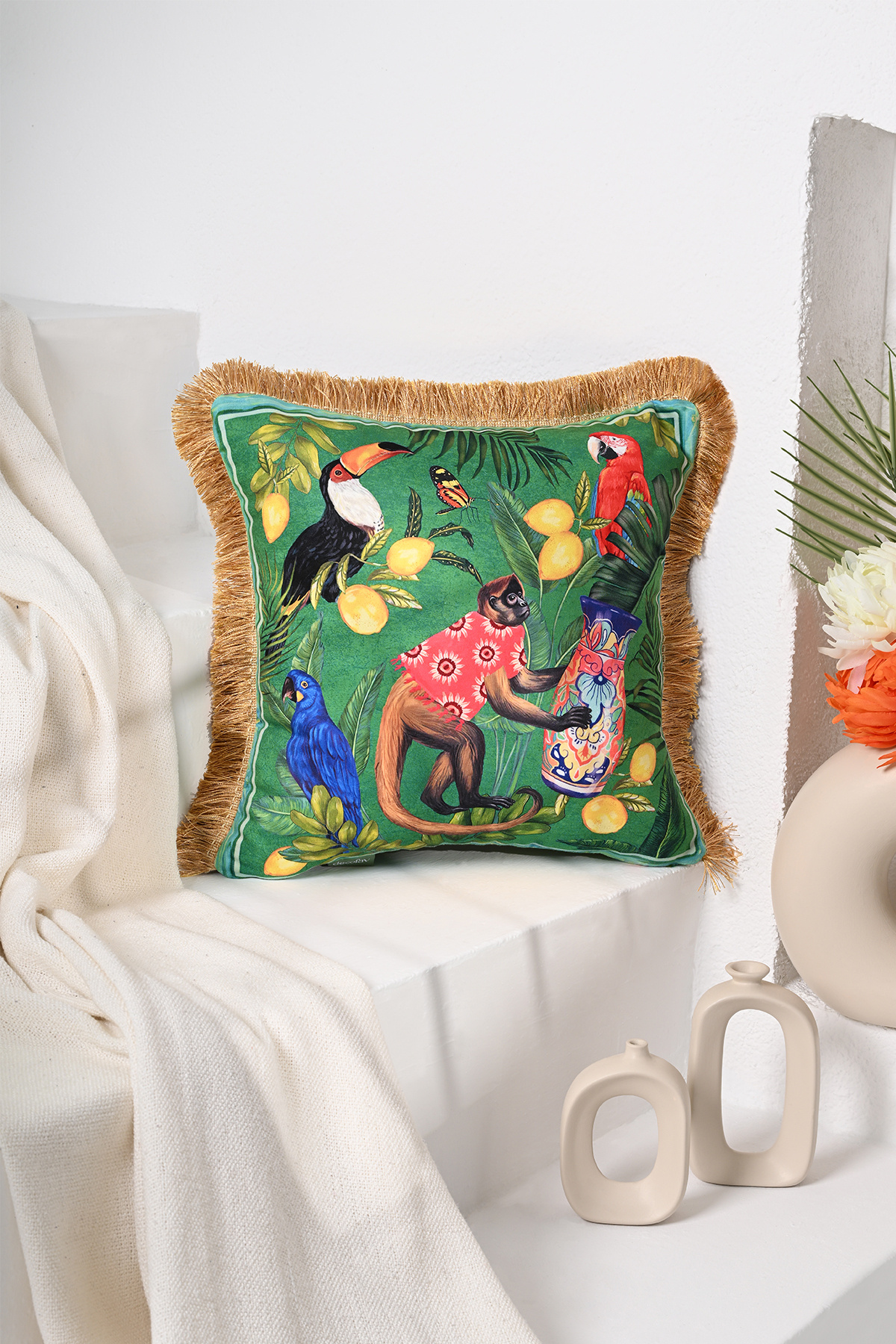 Elegant Ev Kedisi Çita Tasarımlı Kadife Kırlent Kılıfı Saçak Detaylı - Maksimalist Tasarım Elegant Ev Kedisi Çita Tasarımlı Kadife Kırlent Kılıfı Saçak Detaylı - Maksimalist Tasarım K8991 43 x 43