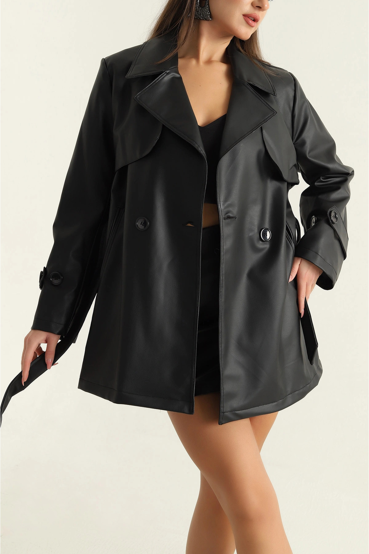 Kolu Lastikli Balon Kol Deri Ceket Kolu Lastikli Balon Kol Deri Ceket MMG00124 L/XL