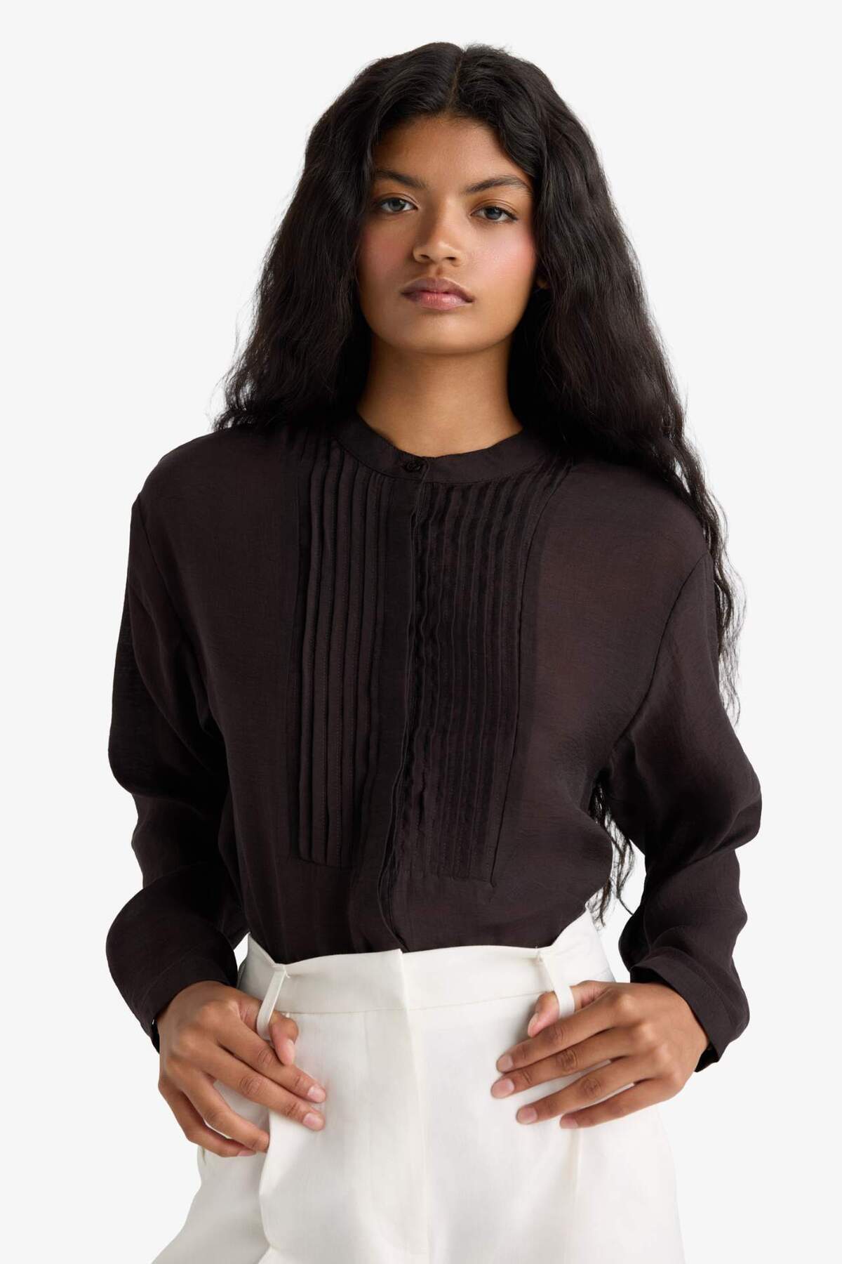 Loose Fit Apaş Yaka Basic Düz Uzun Kollu Gömlek E9007AX25SP Loose Fit Apaş Yaka Basic Düz Uzun Kollu Gömlek E9007AX25SP 2XL