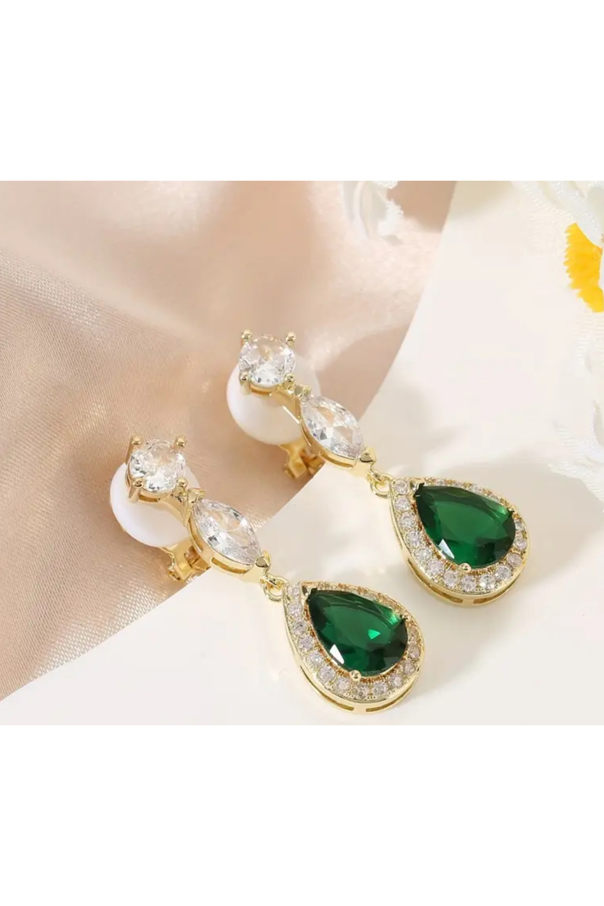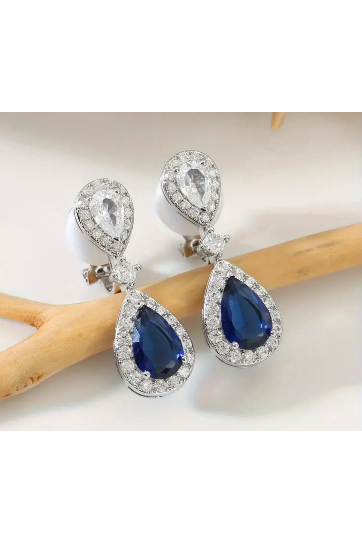 Mavi safir zirkon taşlı damla model klipsli kadın küpesi Mavi safir zirkon taşlı damla model klipsli kadın küpesi aaiika Standart