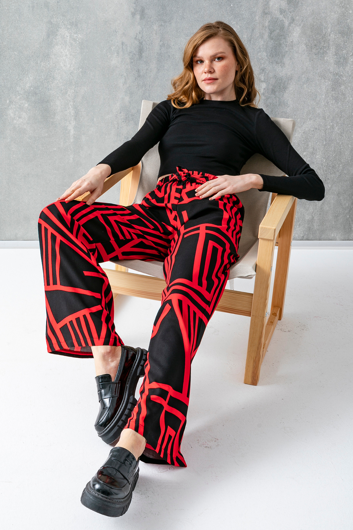 Kadın Kırmızı Siyah Desenli Dökümlü Viskon Palazzo Pantolon - 25001 Kadın Kırmızı Siyah Desenli Dökümlü Viskon Palazzo Pantolon - 25001 1680-25001 2XL