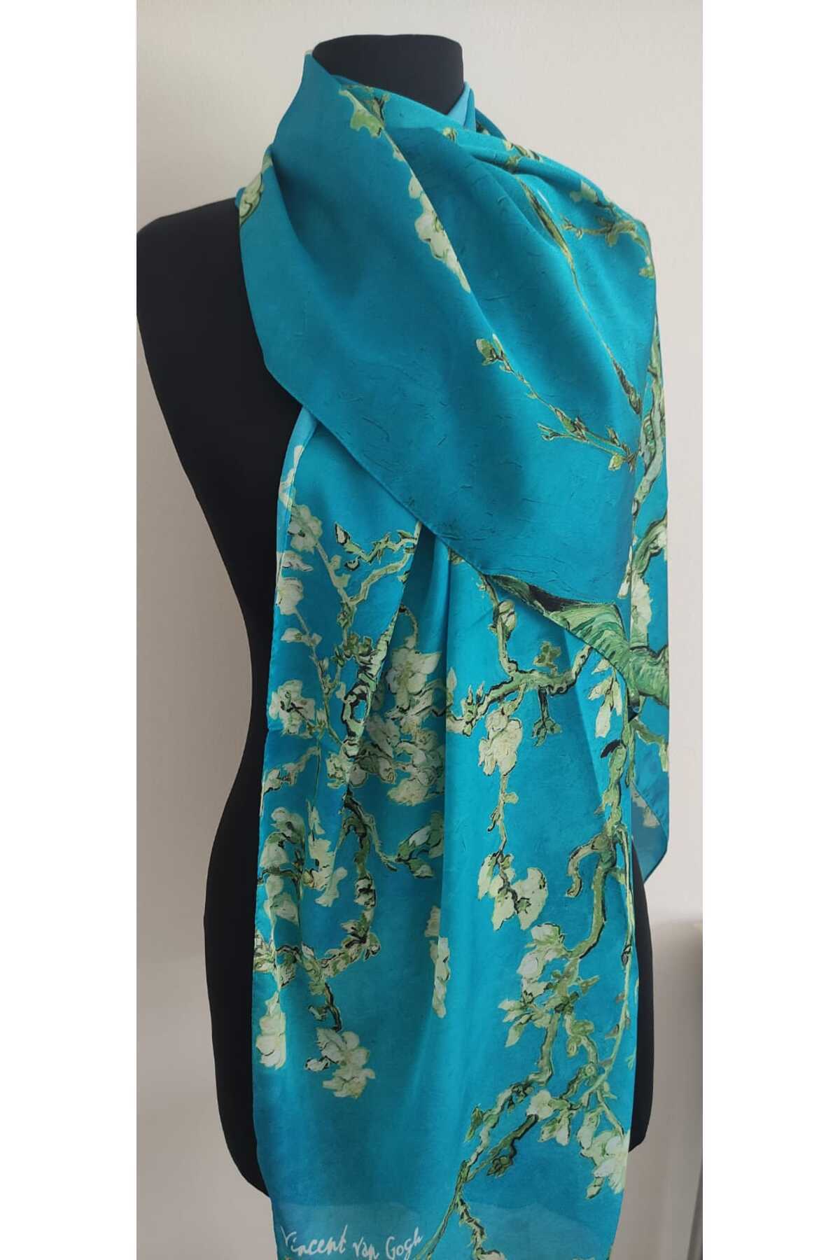 Van Gogh İmzalı Ünlü Almond Blossoms Desen Şal - Orange Van Gogh İmzalı Ünlü Almond Blossoms Desen Şal - Orange ABITVEES 180 x 70