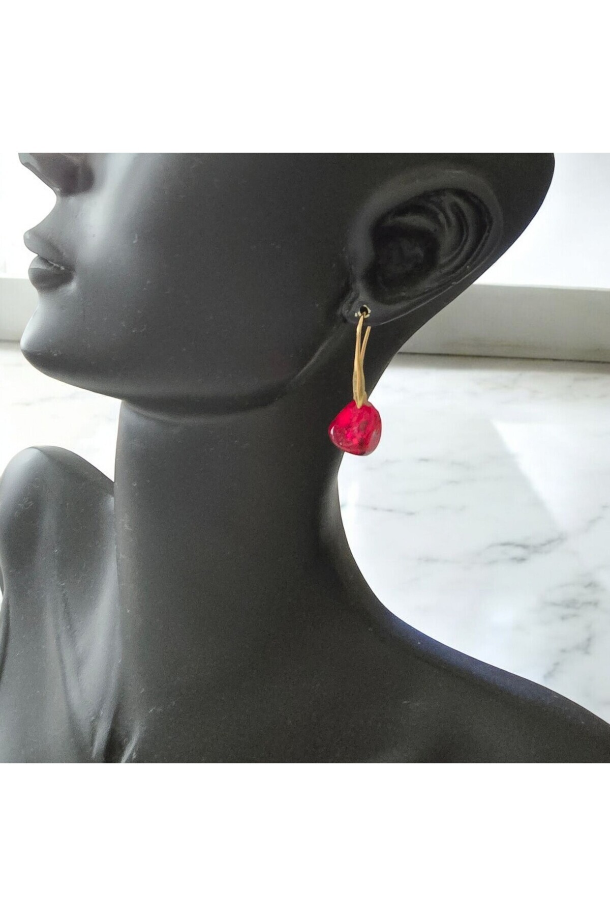 CAM MURANO NAR TANESİ ALTIN KAPLAMA KÜPE CAM MURANO NAR TANESİ ALTIN KAPLAMA KÜPE KU_3435 تک سایز