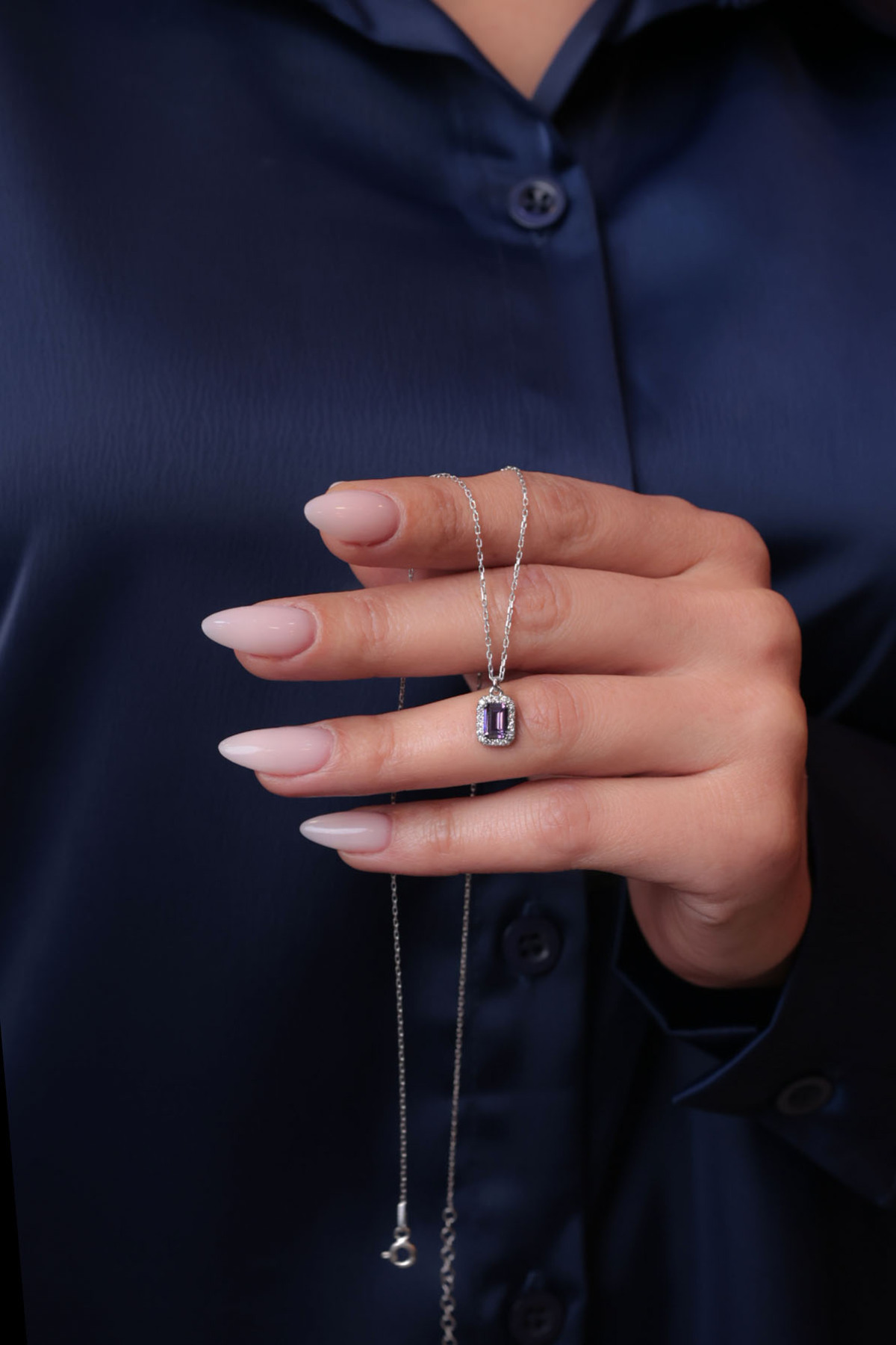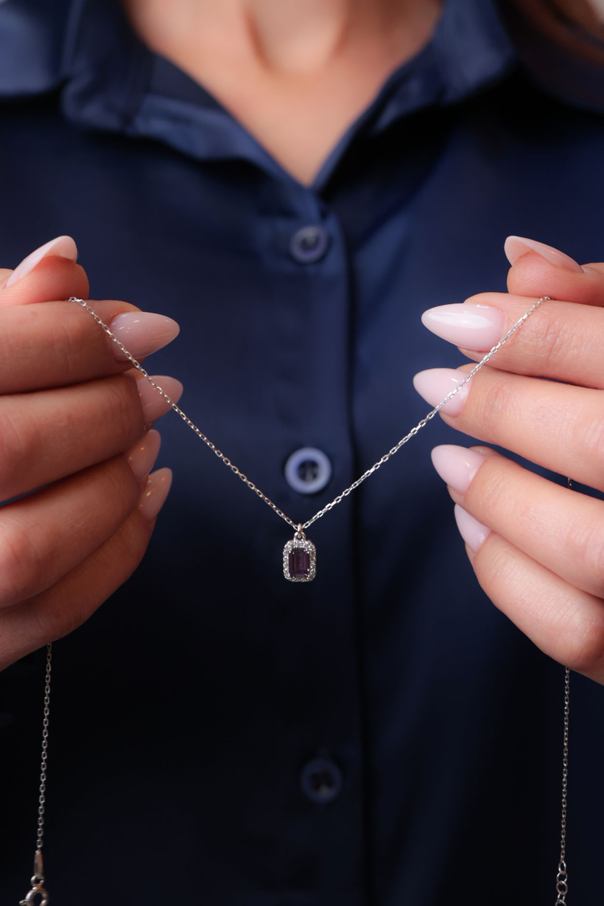 925 Ayar Gümüş Kolye Mor Renk Baget Kadın Gümüş Kolye (40+5CM) (Mor) 925 Ayar Gümüş Kolye Mor Renk Baget Kadın Gümüş Kolye (40+5CM) (Mor) KG.7712 تک سایز