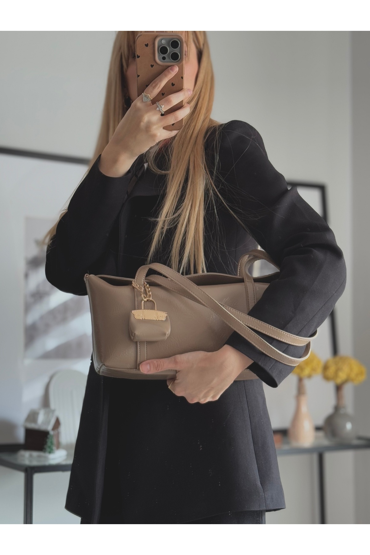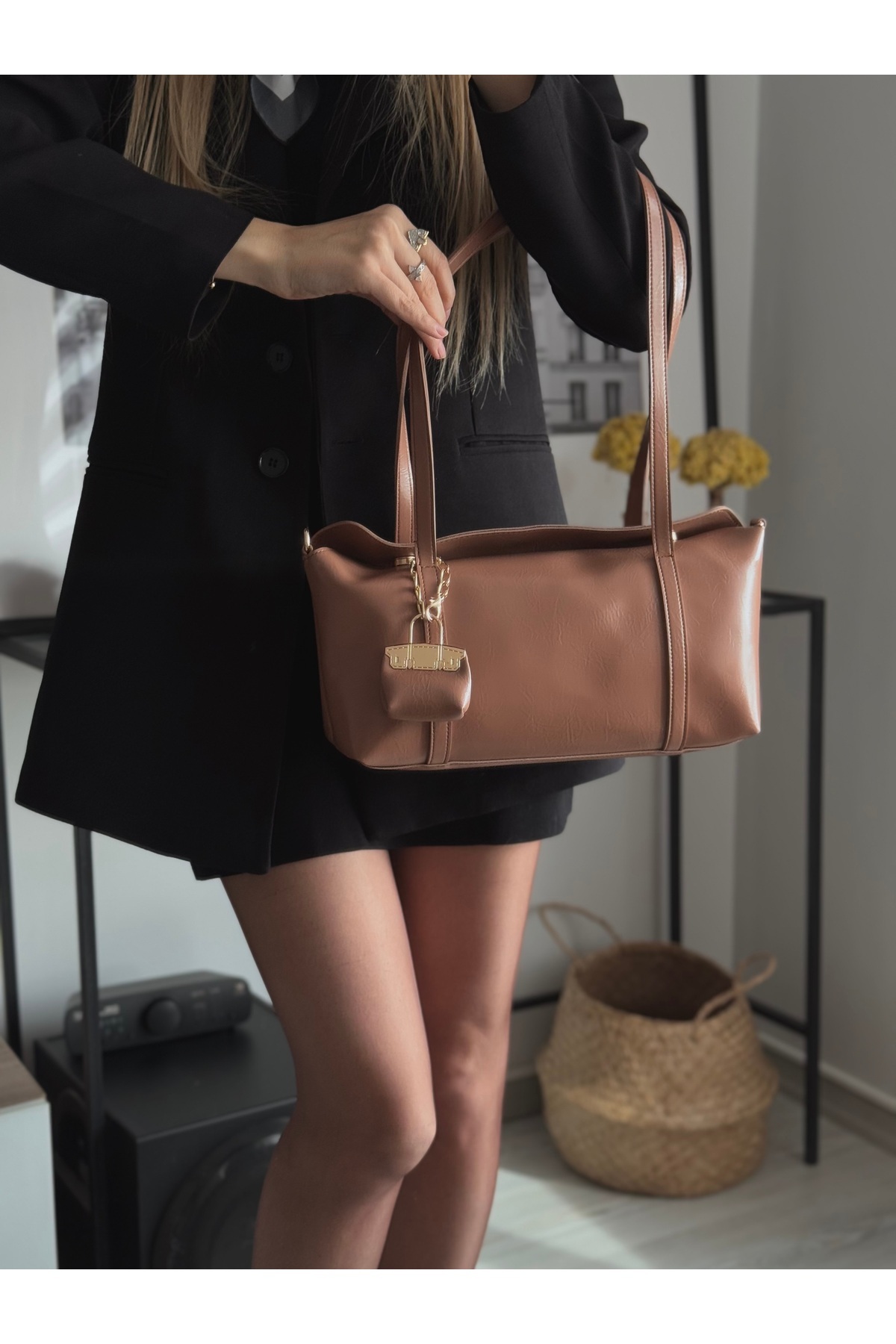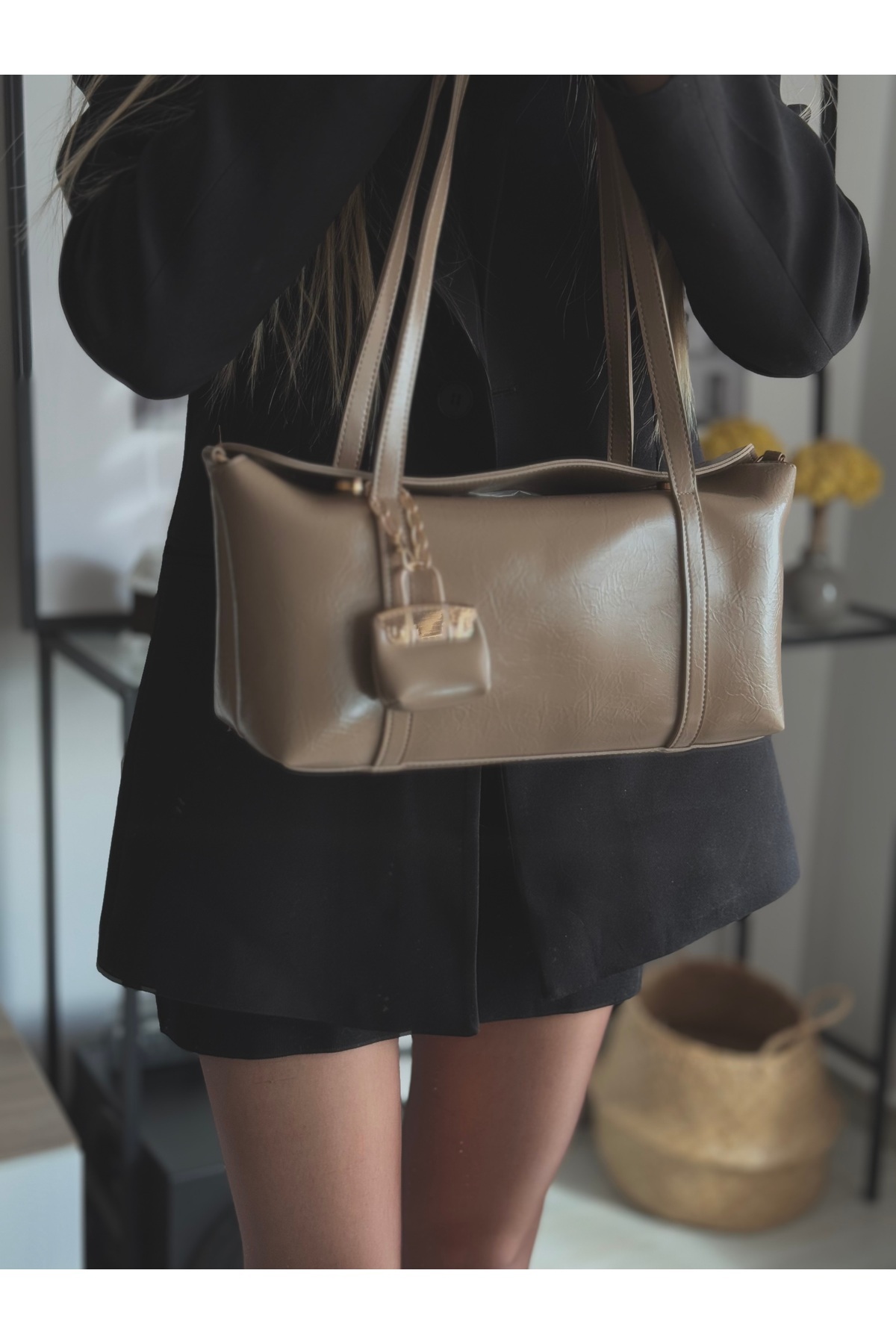 Kadın Deri Omuz Çantası Vizon Kadın Deri Omuz Çantası Vizon omuz123 Standart