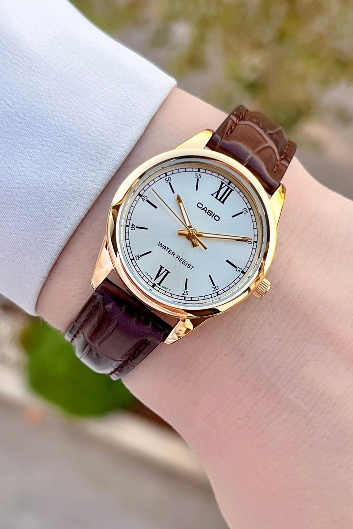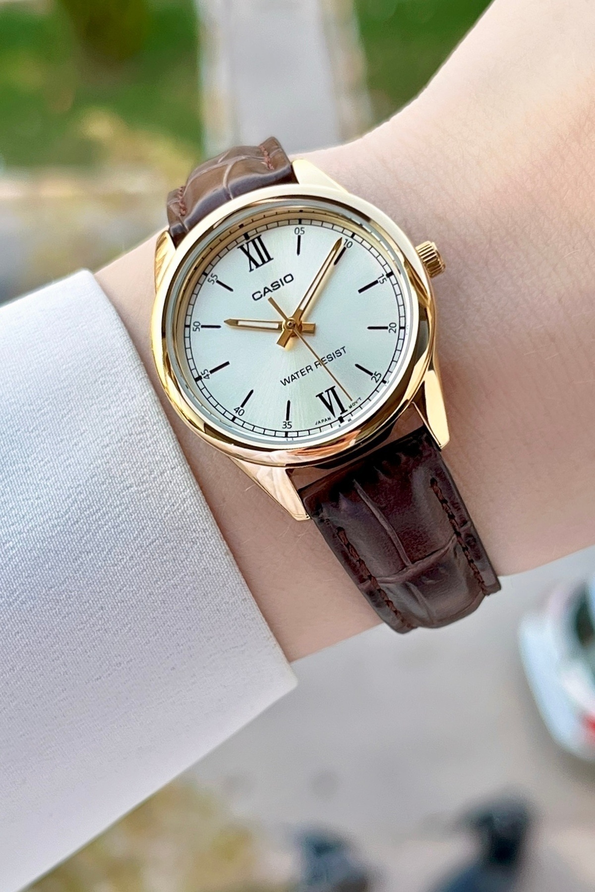 Kadranı Gold Kordonu Kahverengi Renk Kadın Kol Saati Kadranı Gold Kordonu Kahverengi Renk Kadın Kol Saati CAS.LTP-V005GL-9BUDF Orta Boy