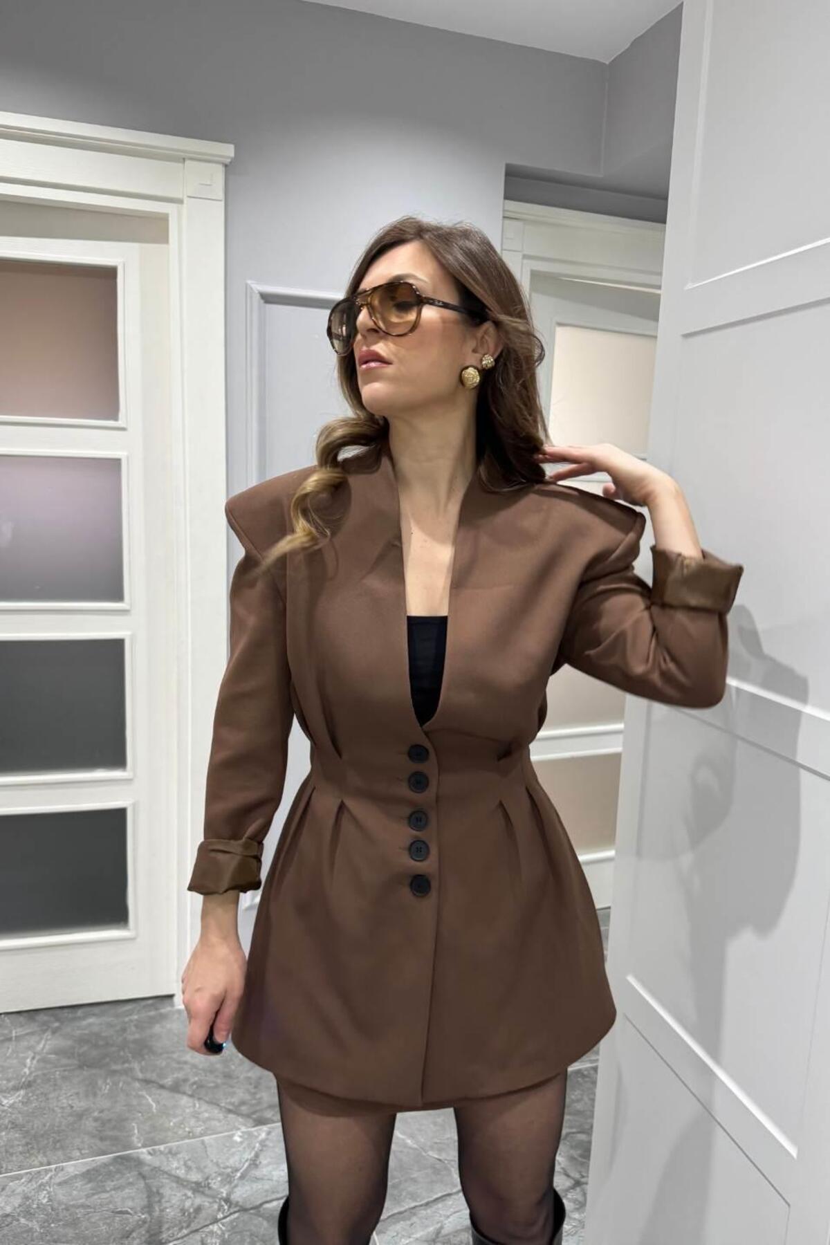 Fresno Belden Oturtmalı Vatkalı Ceket Etek Takım Kahverengi Fresno Belden Oturtmalı Vatkalı Ceket Etek Takım Kahverengi BA25İDG0003 L