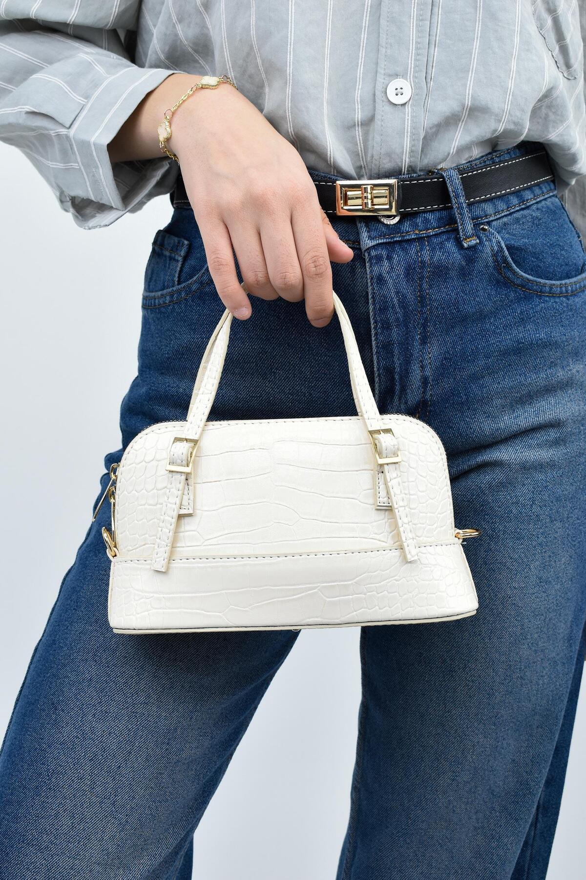 Kadın Kemer Aksesuarlı Baget Omuz Çantası Kadın Kemer Aksesuarlı Baget Omuz Çantası MODASKZ27 Standart