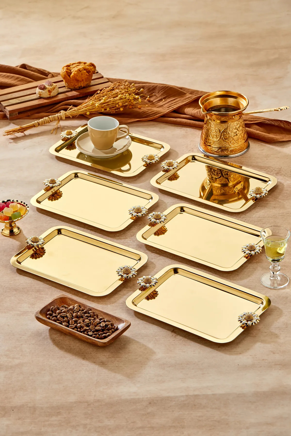 6 Adet Elegante Gold Serisi Duo Bella Flora Kulp Desenli Sunum Tepsisi Söz Nişan Tepsisi 22x16cm 6 Adet Elegante Gold Serisi Duo Bella Flora Kulp Desenli Sunum Tepsisi Söz Nişan Tepsisi 22x16cm TC-59 تک سایز