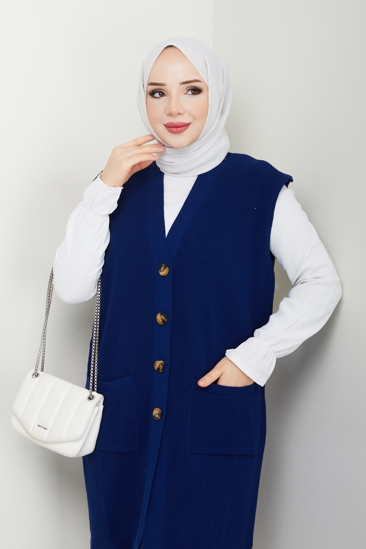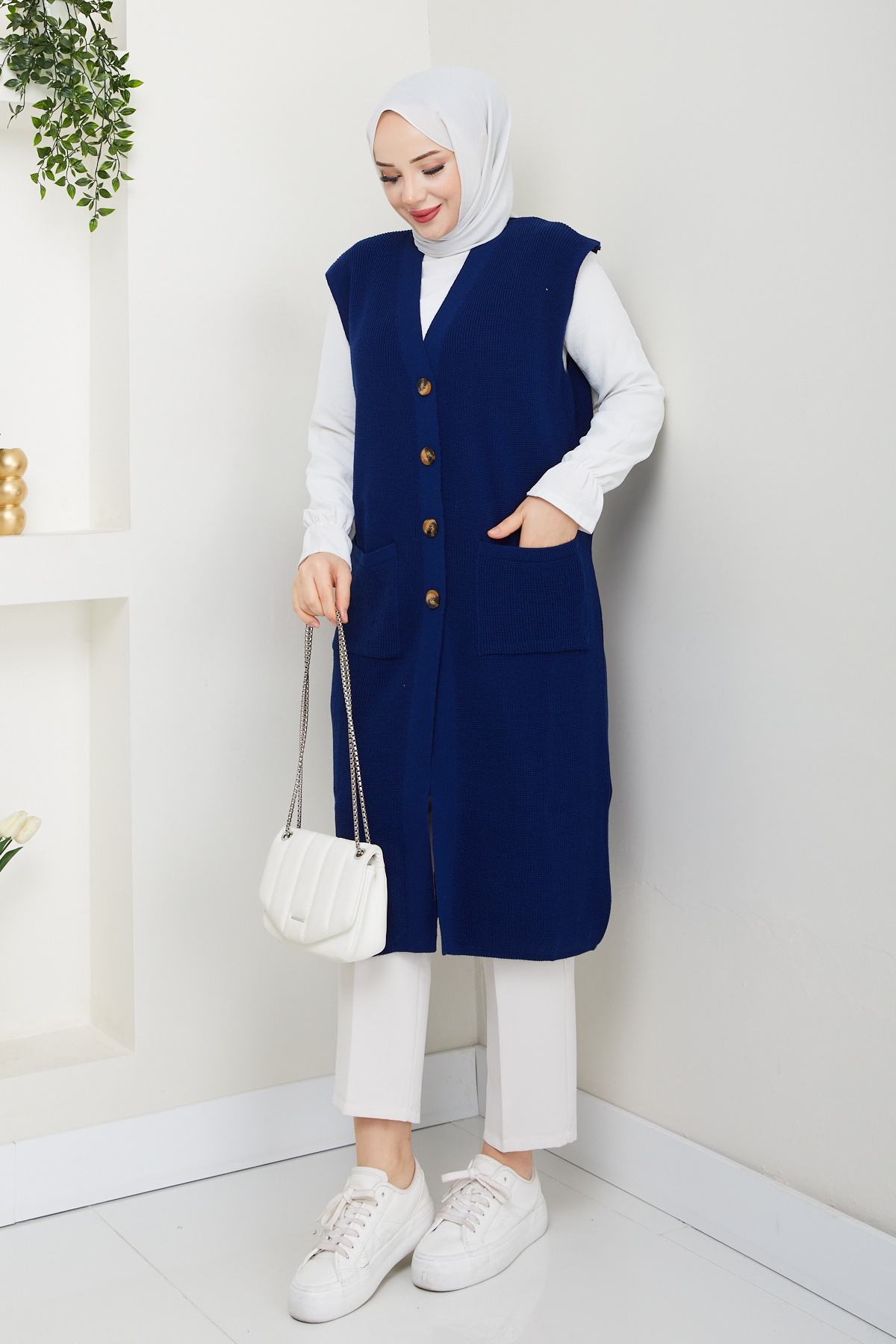 Kadın Cepli Düğme Kapamalı Triko Yelek Kadın Cepli Düğme Kapamalı Triko Yelek pmk378 تک سایز